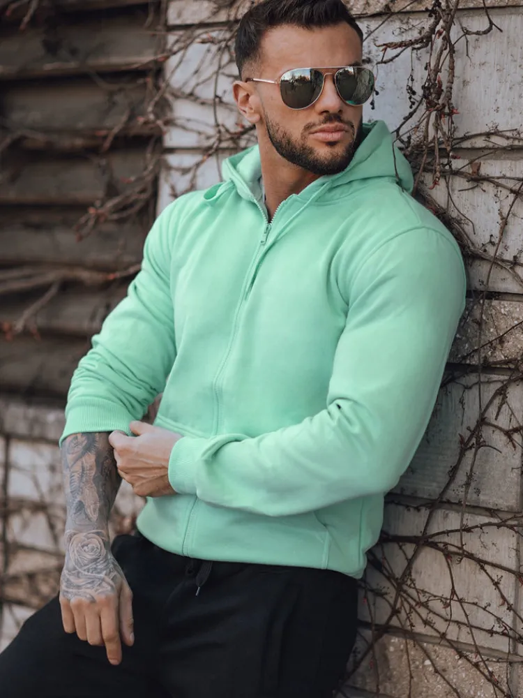 Rewelacyjny męski komplet dresowy.Wykonany z miękkiego i przyjemnego w dotyku materiału.Bluza męska rozpinana z kapt…