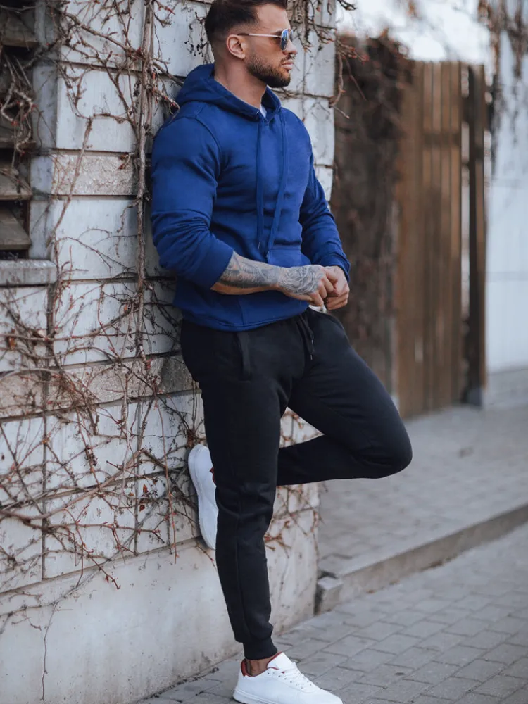 Rewelacyjny męski komplet dresowy.Wykonany z miękkiego i przyjemnego w dotyku materiału.Męska bluza z kapturem.Kaptu…