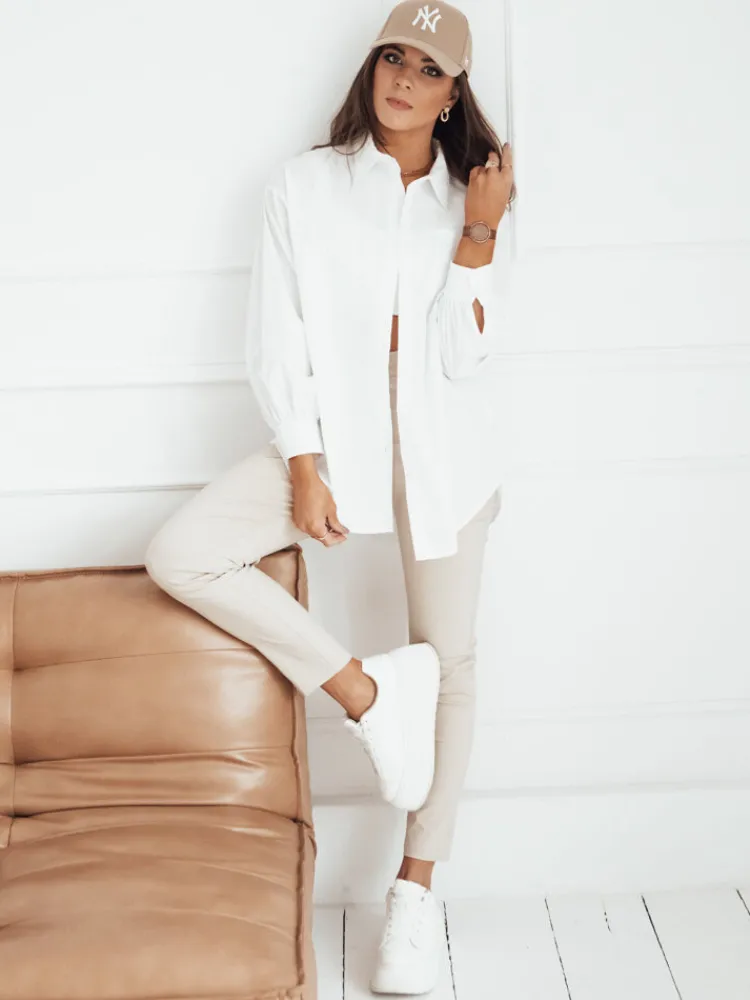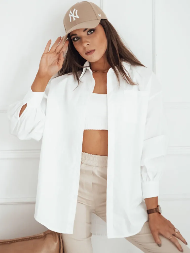 Klasyczna koszula o oversizowym i asymetrycznym fasonie to niezbędnik nadchodzącego sezonu. Na wysokości piersi posiada kieszonkę, która stanowi element ozdobny. Dłuższy tył sprawia, że perfekcyjnie zaprezentuje się w zestawieniu, np. z legginsami. Dzięki swojej uniwersalności idealnie dopełni niemal każdą stylizację nadając jej modnego wyglądu. Model dostępny w trzech wersjach kolorystycznych.