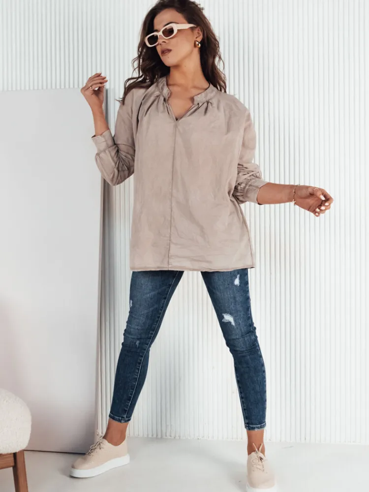Odkryj elegancję w luźnej formie z naszą najnowszą koszulą NEBREDA. Jej swobodny krój zapewnia komfort noszenia przez cały dzień, a subtelny dekolt w serek delikatnie podkreśla sylwetkę. Stójka nadaje koszuli wyrafinowanego charakteru, idealnego zarówno do biurowych, jak i casualowych zestawów. Skomponuj ją z ulubionymi jeansami lub ołówkową spódnicą dla uzyskania stylowego wyglądu.