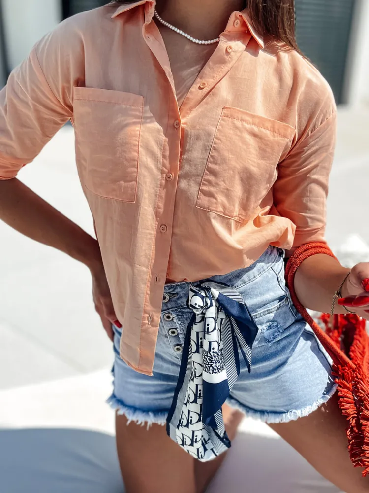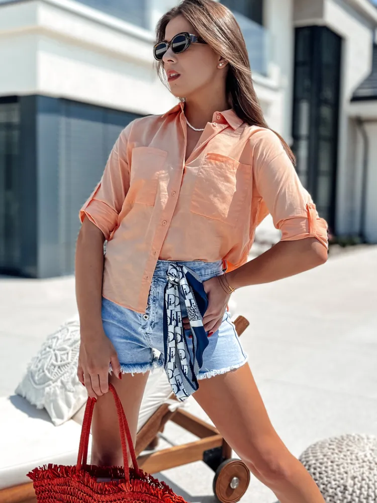 Elegancka koszula STYLISH zapinana na guziki z kołnierzykiem, która idealnie sprawdzi się zarówno w biurze, jak i na co dzień. Wykonana z wysokiej jakości materiału, zapewnia komfort noszenia przez cały dzień. Model posiada dwie praktyczne kieszenie na piersiach oraz rękawy, które można podpiąć, co dodaje jej uniwersalności. To doskonały wybór dla kobiet ceniących sobie styl i wygodę w jednym.