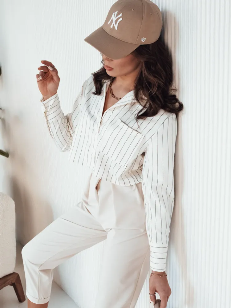 Ta koszula w paski o krótkim, ale luźnym kroju z klasycznym kołnierzem i zapięciem na guziki jest doskonała dla tych, którzy cenią sobie prostotę i komfort w modzie. Z praktyczną kieszenią na piersi, nadaje się zarówno do eleganckich, jak i codziennych zestawów.