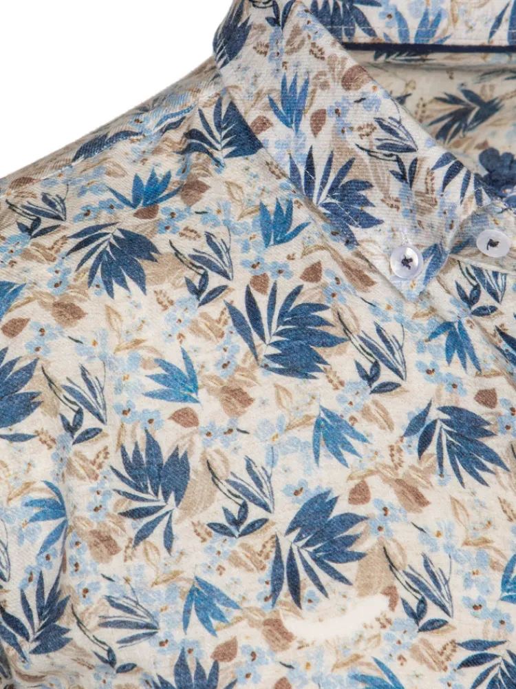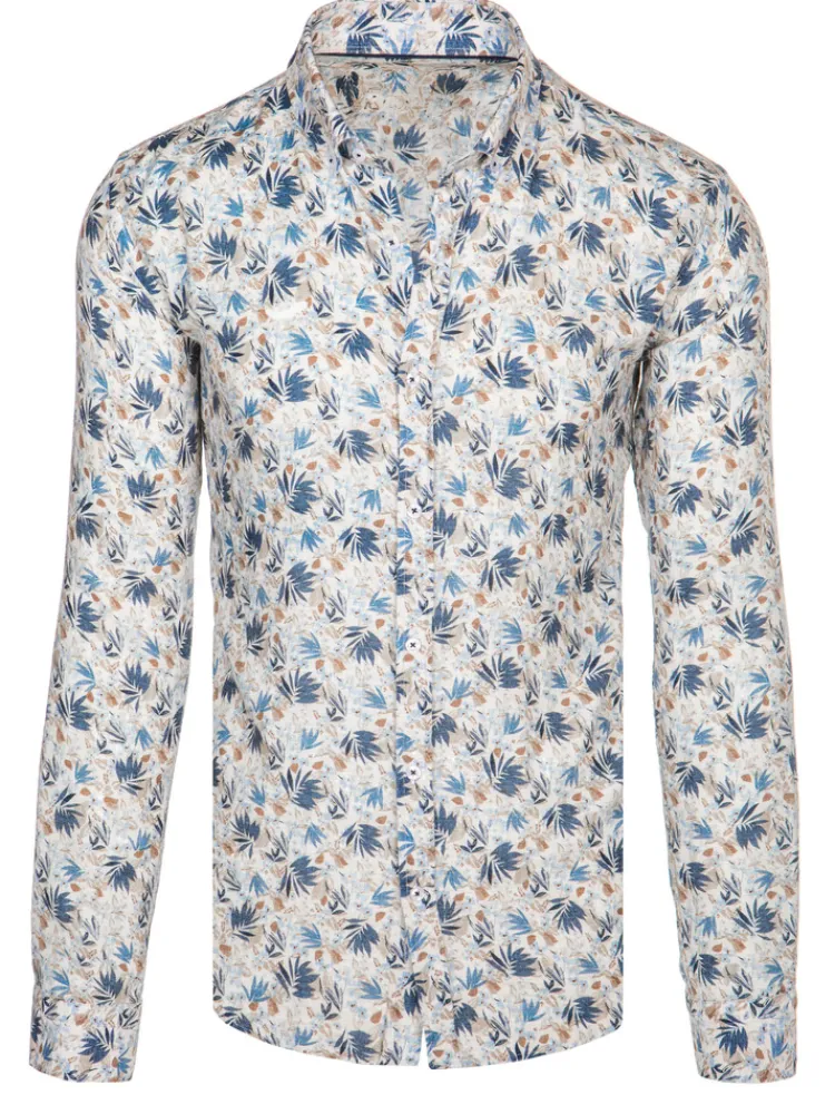 Męska koszula z efektownym botanicznym wzorem to doskonały wybór na wiosnę i lato. Regularny fason zapewnia komfort, a długi rękaw z mankietem nadaje elegancji. Guziki oraz klasyczny kołnierzyk dopełniają całości, tworząc uniwersalny element garderoby na różne okazje – od codziennych spacerów po spotkania w gronie znajomych.
