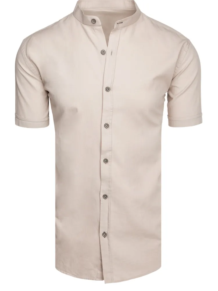 Męska koszula z krótkim rękawem i kołnierzem typu stójka to doskonały wybór dla tych, którzy cenią nowoczesny styl i wygodę. Wykonana z przewiewnego materiału, zapewnia komfort noszenia nawet podczas upalnych dni. Fason slim fit podkreśla sylwetkę, a gładki, minimalistyczny design pozwala na wszechstronne stylizacje.