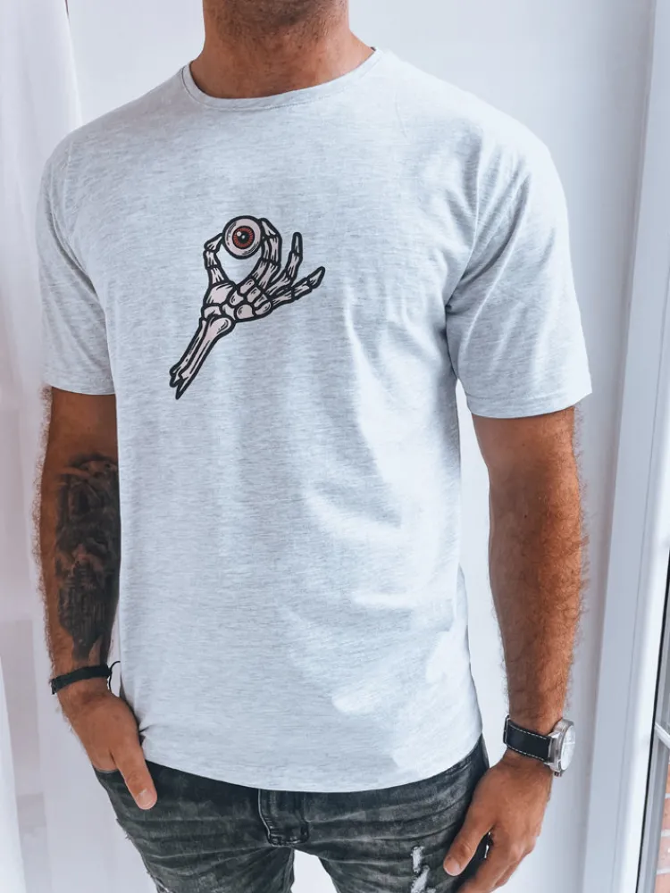 Koszulki Męskie>Dstreet Jasnoszara koszulka męska z nadrukiem RX5282