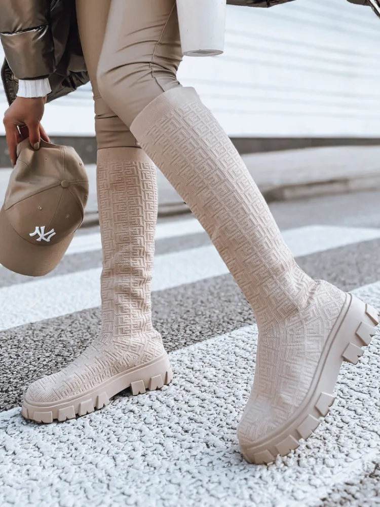 Oryginalne kozaki SCARLET z elastyczną cholewką przed kolano to doskonała propozycja do jesienno-zimowych stylizacji. Umiejscowione na grubej podeszwie zapewnią Ci komfort i stylowy wygląd. Bezbłędnie zaprezentują się zarówno w casualowych jak i eleganckich zestawieniach.