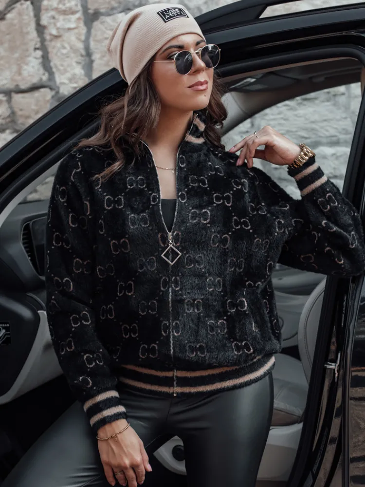 Krótka kurtka damska a’la alpaka wyróżniająca się miękkim, luksusowym materiałem i modnym wzorem, który doskonale łączy elegancję z casualowym stylem. Ściągacze przy rękawach i na dole zapewniają wygodę noszenia, a zamek błyskawiczny ułatwia zakładanie. Idealna na chłodniejsze dni, sprawdzi się zarówno w codziennych stylizacjach, jak i na bardziej eleganckie wyjścia.