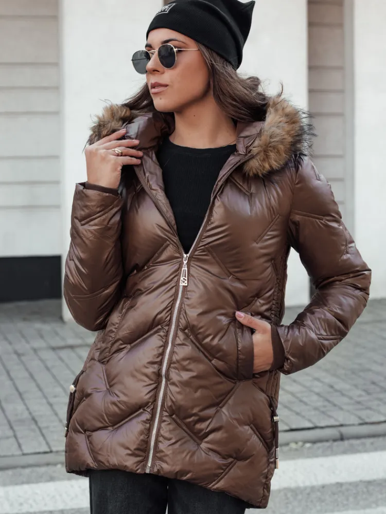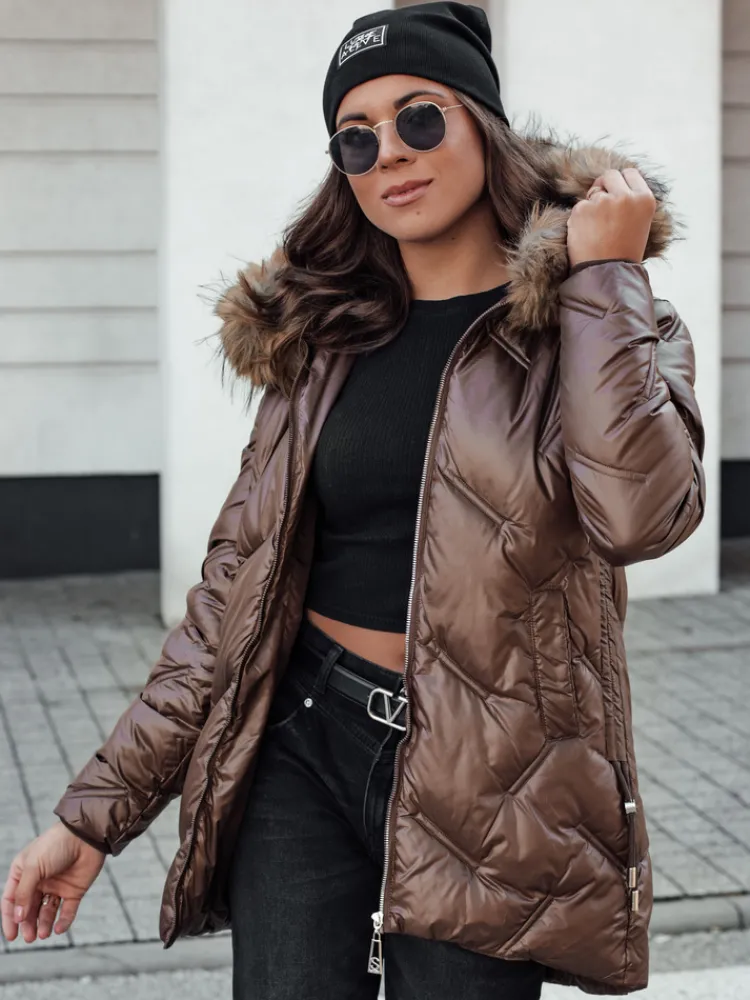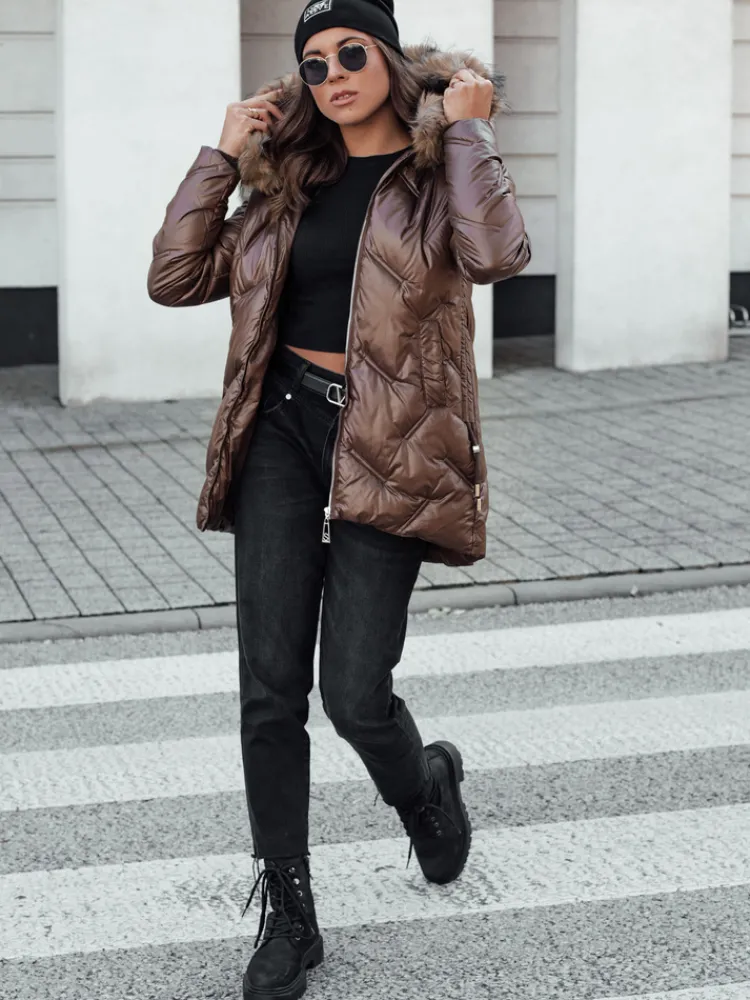 Pikowana kurtka damska o dopasowanym kroju to połączenie funkcjonalności i modnego wyglądu. Wysoki kaptur chroni przed zimnym wiatrem, a futrzane detale podkreślają elegancję. Kurtka posiada praktyczne kieszenie i zamek błyskawiczny, co zapewnia wygodę noszenia. Idealna na codzienne stylizacje w chłodniejsze dni.