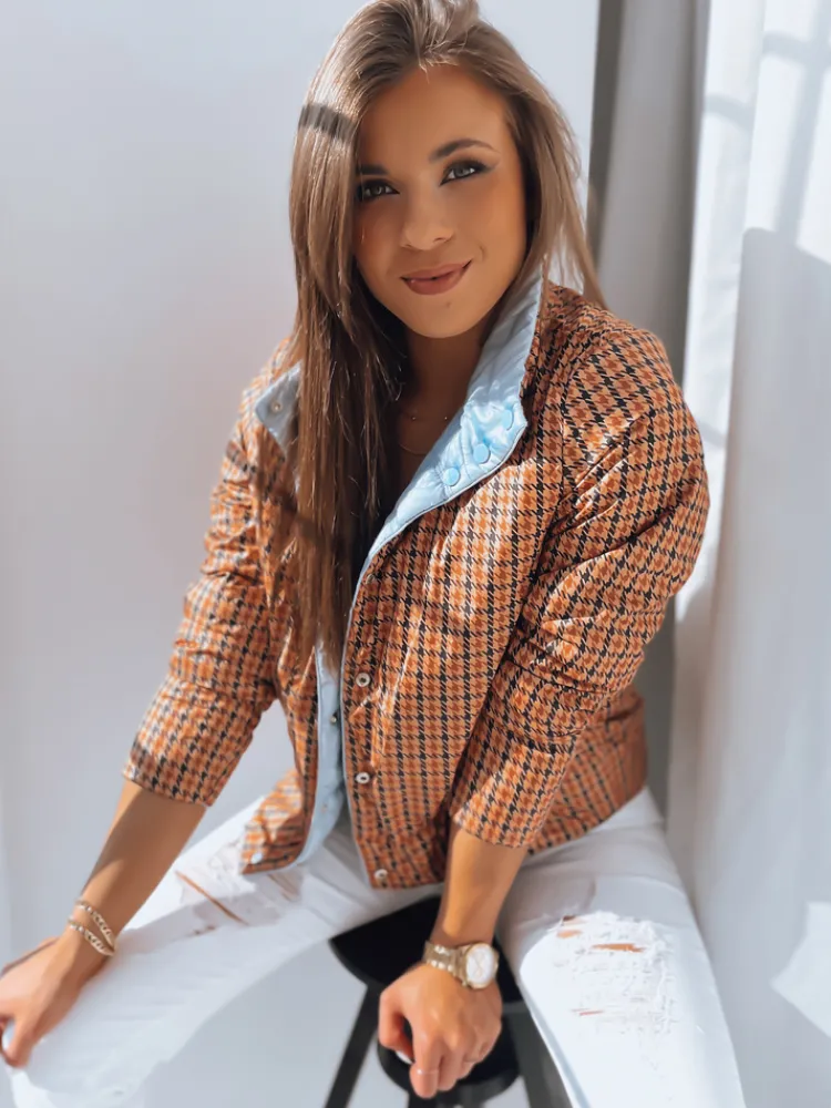Dwustronna stylowa kurtka, która posiada ozdobne przeszycia u dołu oraz przy mankietach. Druga strona kurtki posiada wzór w pepitkę. Model zapinany jest na napy. Kurtka polecana dla osób, które lubią styl i wygodę.