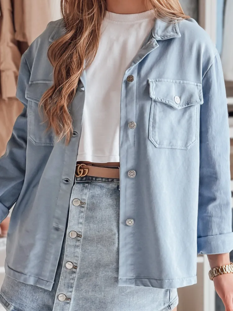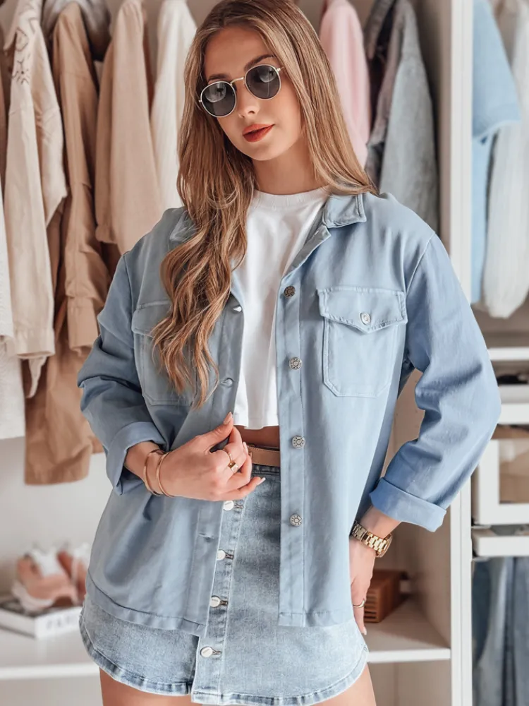 Kurtka koszulowa w wersji oversize to doskonałe połączenie wygody i miejskiego stylu. Luźny krój pozwala na noszenie jej na różne sposoby – jako lekką warstwę wiosenną lub stylową alternatywę dla klasycznej marynarki. Uniwersalny rozmiar pasuje od XS do L. Długie rękawy z mankietami zapinanymi na guziki dodają elegancji, a kieszenie podkreślają casualowy charakter. Można ją zestawić z klasycznymi spodniami, legginsami lub sportową spódnicą.