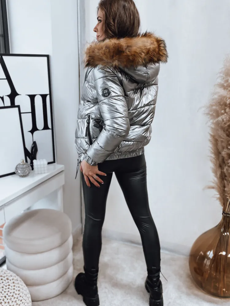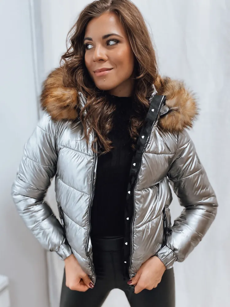 Kurtka z metalicznym połyskiem. Posiada odpinane futerko oraz kaptur. Ciepła i wygodna. Rękawy zakończone ściągaczami. Dzięki niej stworzysz modne, sportowe stylizacje.