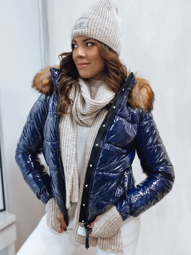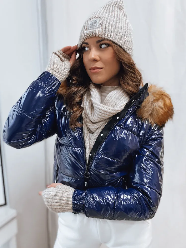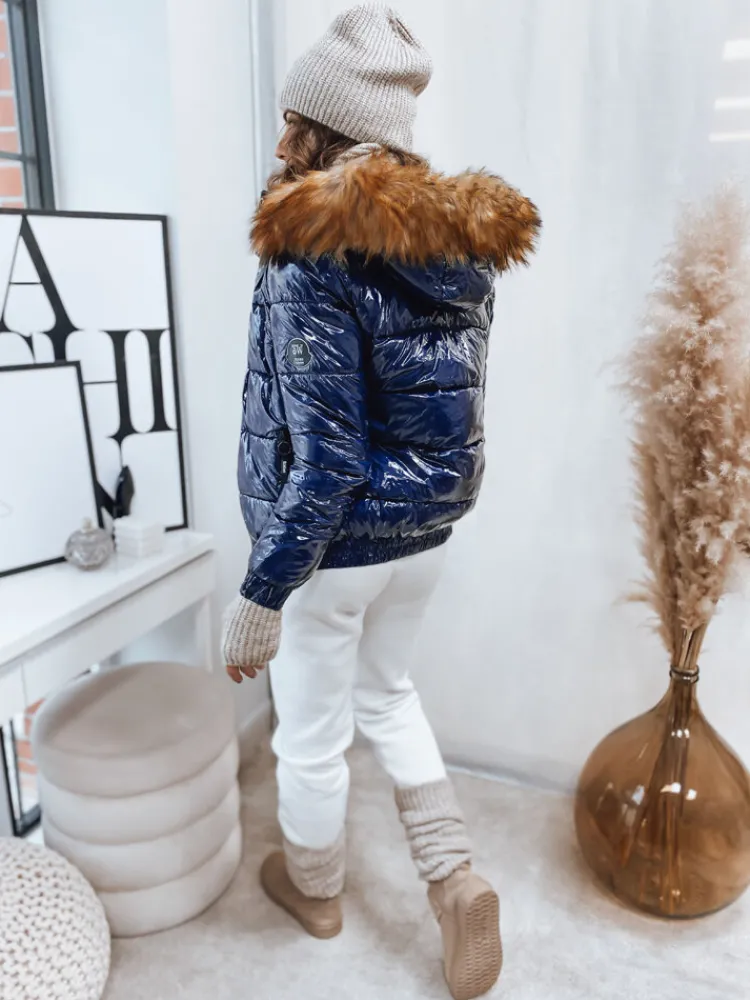 Kurtka z metalicznym połyskiem. Posiada odpinane futerko oraz kaptur. Ciepła i wygodna. Rękawy zakończone ściągaczami. Dzięki niej stworzysz modne, sportowe stylizacje.