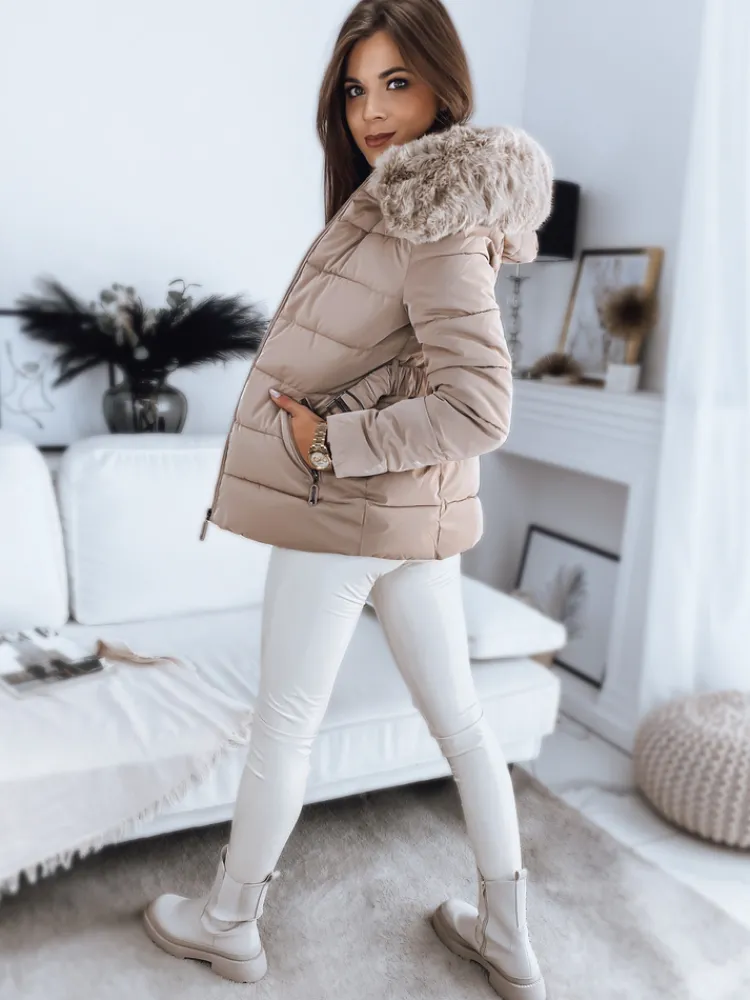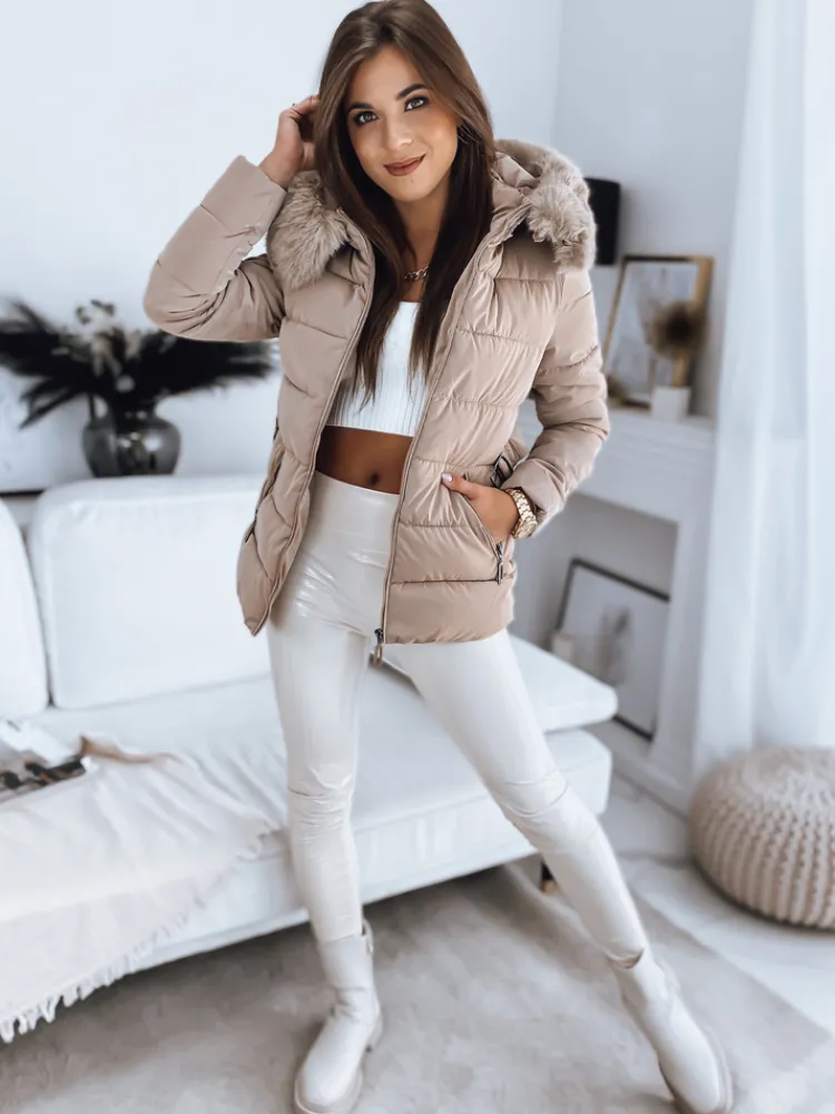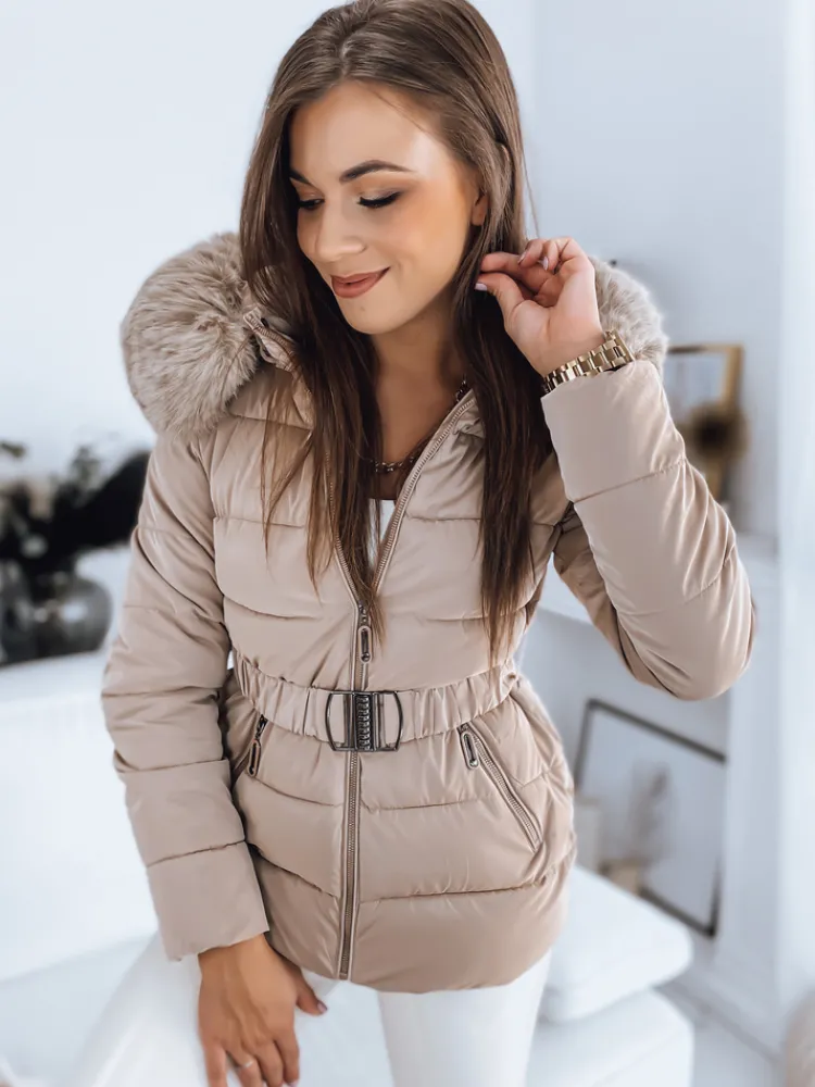 MINEL to propozycja dla stylowych kobiet. Posiada odpinany kaptur oraz odpinane futerko przy kapturze. Na wysokości talii znajduje się pasek, który pozwoli pięknie ją podkreślić. Wypełniona jest puchem syntetycznym, który zapewni ciepło w najchłodniejsze dni.