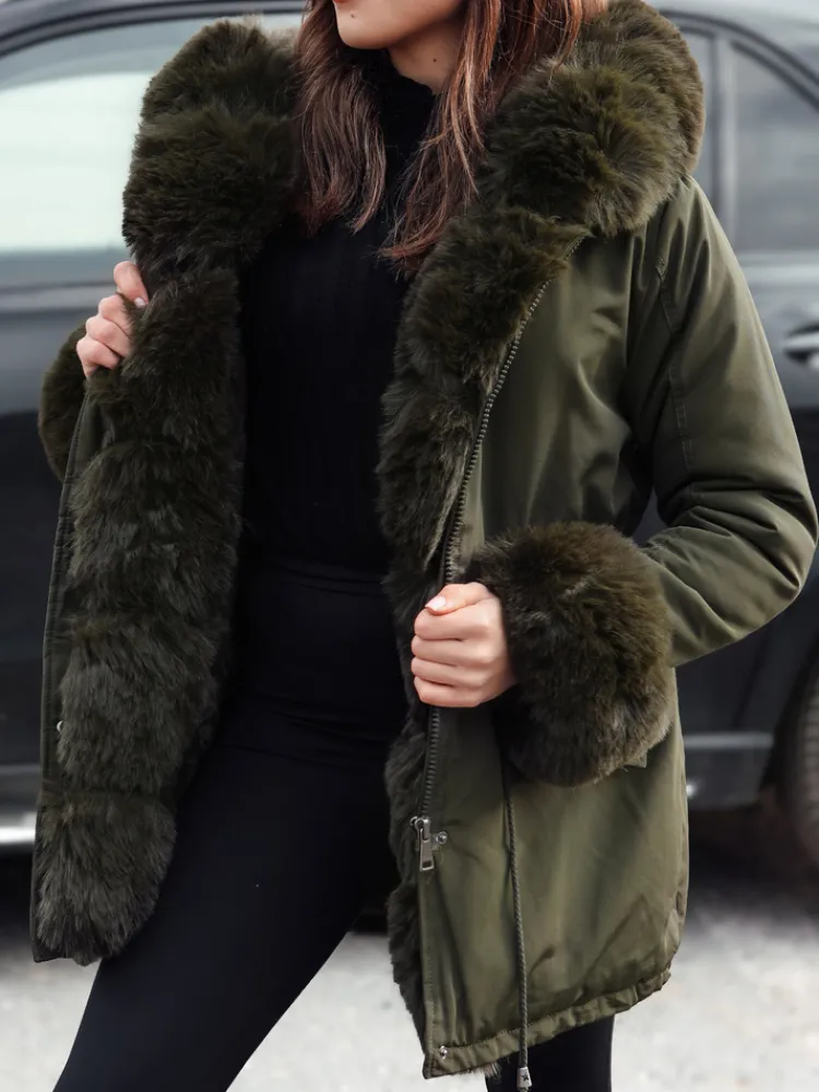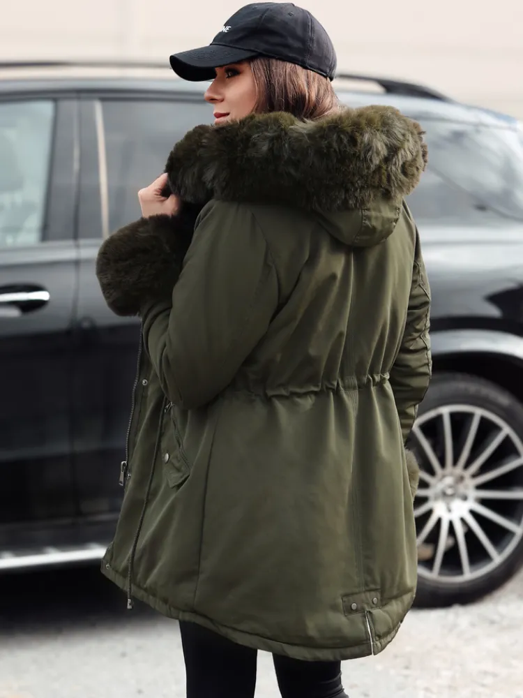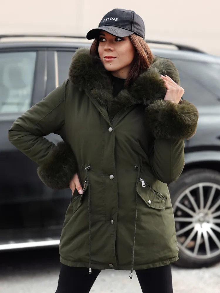 Stylowa i ciepła parka z futrzanym wykończeniem to idealny wybór na zimowe dni. Praktyczne kieszenie i regulowany pas zapewniają wygodę oraz funkcjonalność. Wyjątkowy design dodaje elegancji, łącząc klasyczny krój z nowoczesnymi detalami.