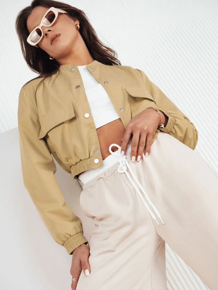 Odkryj krótką kurtkę przejściową, która połączy funkcjonalność z miejskim szykiem. Wyposażona w duże kieszenie i wygodne ściągacze u dołu i przy rękawach. Stanie się Twoim niezawodnym towarzyszem na wiosenne dni. Doskonale sprawdzi się jako element codziennego, miejskiego looku.