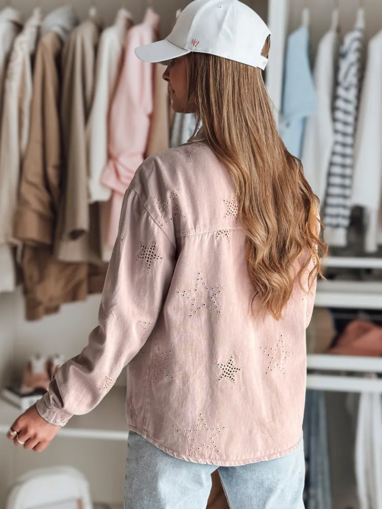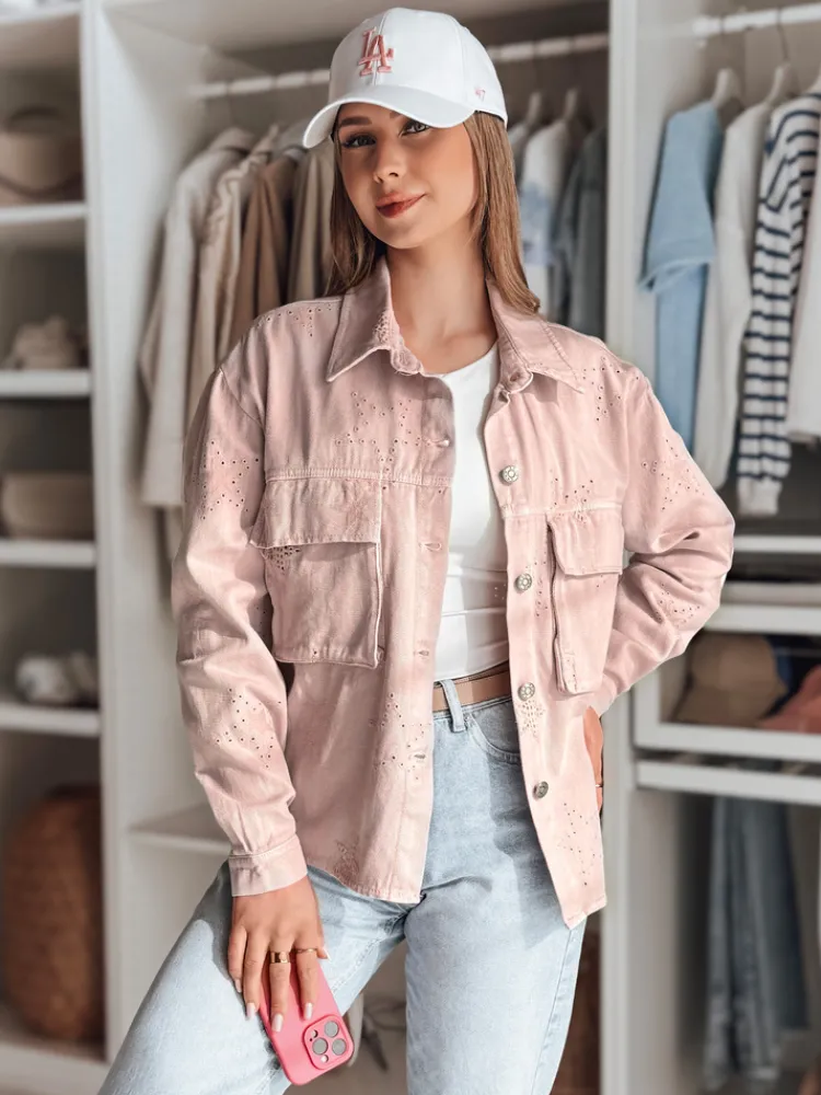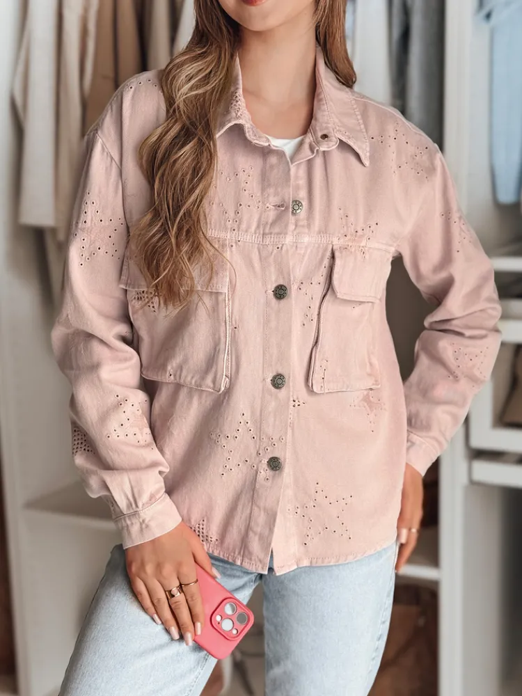 Kurtka damska o casualowym kroju, idealna na sezon przejściowy. Zapinana na guziki, z klasycznym kołnierzem i praktycznymi kieszeniami. Uniwersalny rozmiar pasuje od XS do L. Ozdobiona subtelnym motywem gwiazdek, które dodają jej unikalnego charakteru. Świetnie komponuje się zarówno z jeansami, jak i eleganckimi spodniami, tworząc stylowy look.