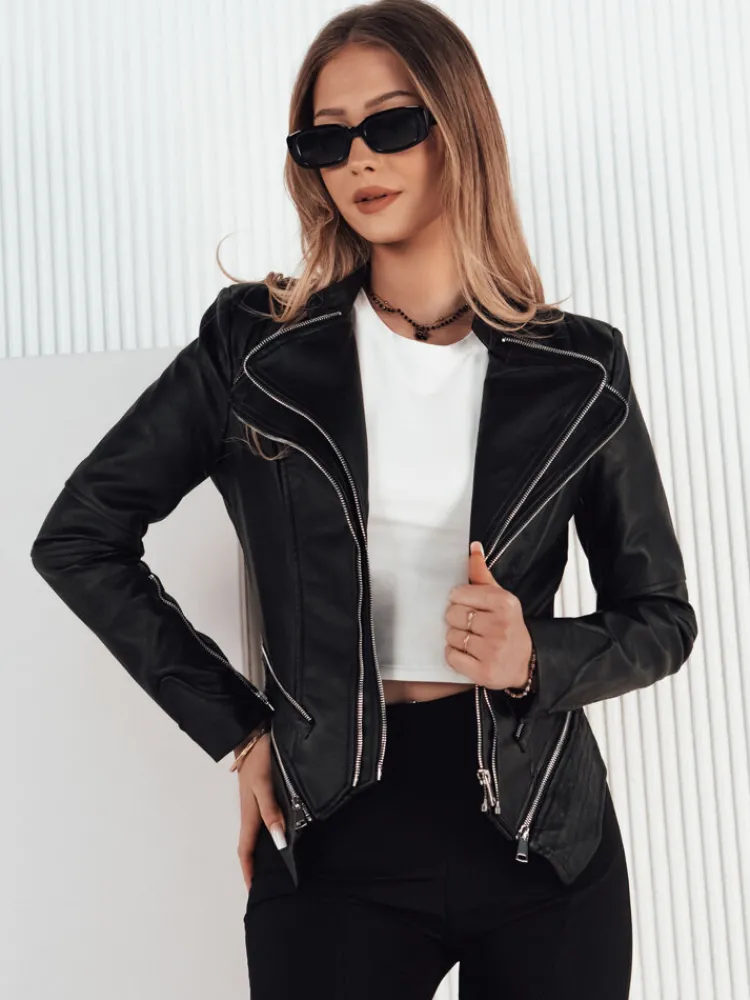 Kurtka skórzana AGER to ikona miejskiego stylu. Zaprojektowana z myślą o kobietach, które cenią sobie połączenie funkcjonalności i wyrafinowanego designu. Liczne zamki dodają kurtce wyrazistego charakteru. Stójka, rozległy kołnierz i przeszycia to elementy, które wyróżniają tę kurtkę, dodając jej elegancji. Kurtka AGER to idealny wybór dla kobiet z charakterem.