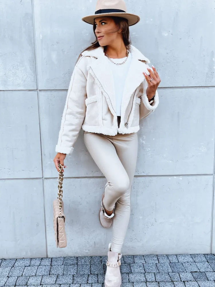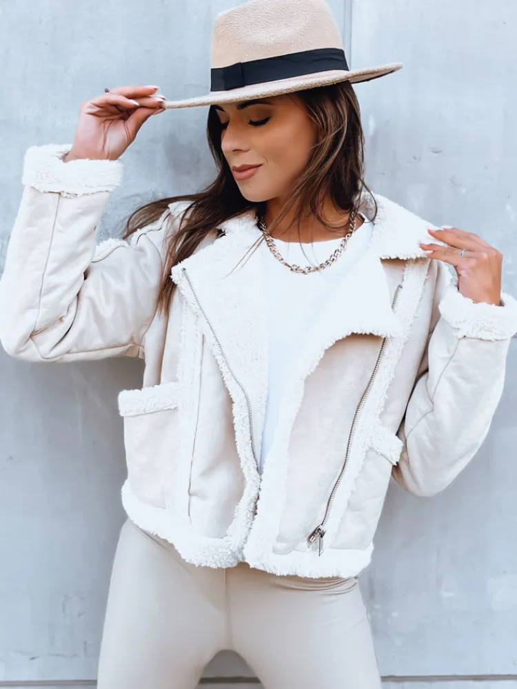 Krótka kurtka wykonana z imitacji skóry to doskonała propozycja na nadchodzący sezon. Ocieplana jest od wewnątrz kożuchem, znajdującym się również na kołnierzu i jako element ozdobny na zewnętrznej stronie kurtki. Zapinana jest na suwak i posiada dwie kieszenie. Będzie to idealne uzupełnienie twoich jesiennych stylizacji.
