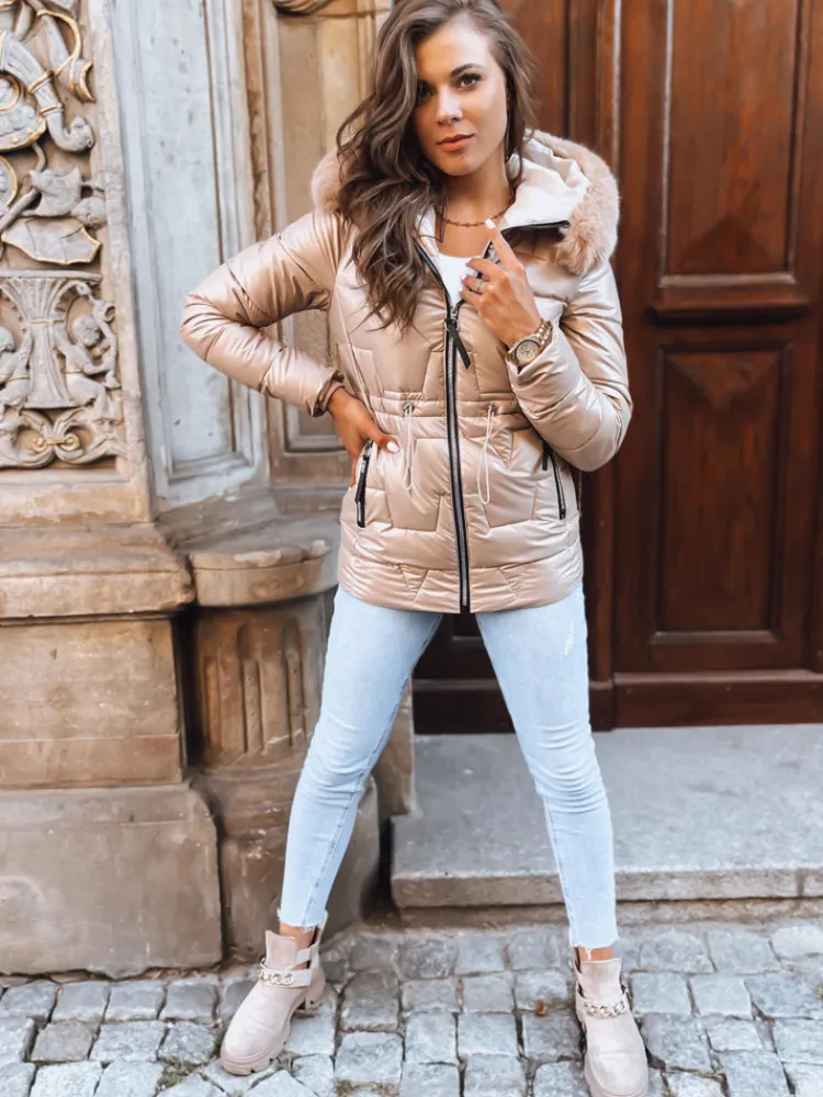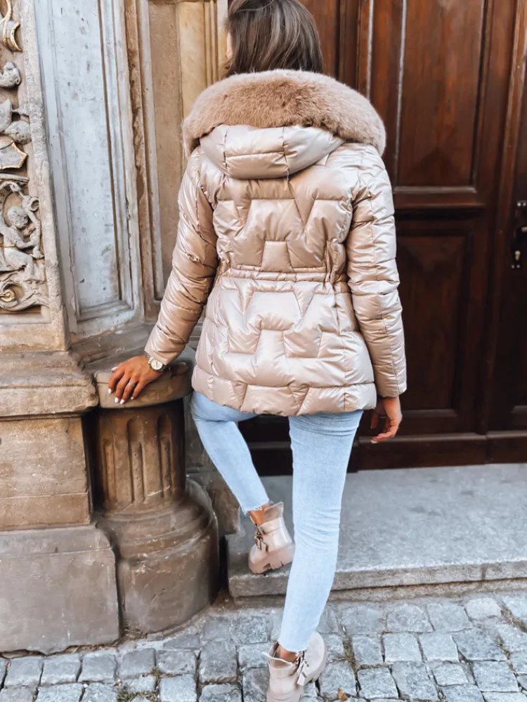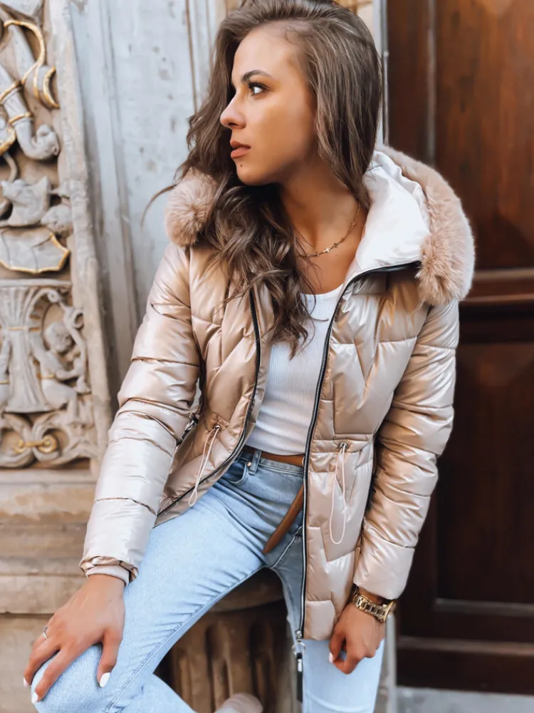 Połyskująca kurtka, która zapewni Ci maksimum komfortu. Model posiada ściągacze w talii, dzięki czemu pięknie podkreśla kobiece kształty. Futerko od kaptura jest odpinane. Model dostępny jest w kilku wersjach kolorystycznych.
