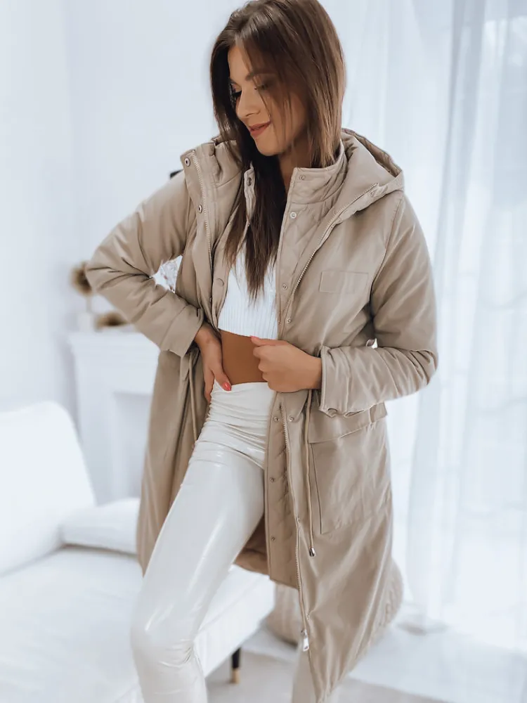 Isla to zimowa, bardzo ciepła kurtka. Model jest ocieplany, dzięki czemu nada się na chłodne jesienno-zimowe wieczory. Dodatkowo zapięcie na napy i suwak maksymalnie chroni przed zimnem. Kaptur nie jest odpinany. Ściągacz w talii idealnie podkreśli kobiece kształty. Kurtka jest szczególnie polecana dla osób, które lubią wyróżniać się w tłumie.