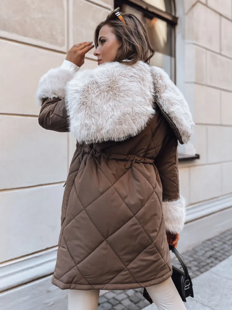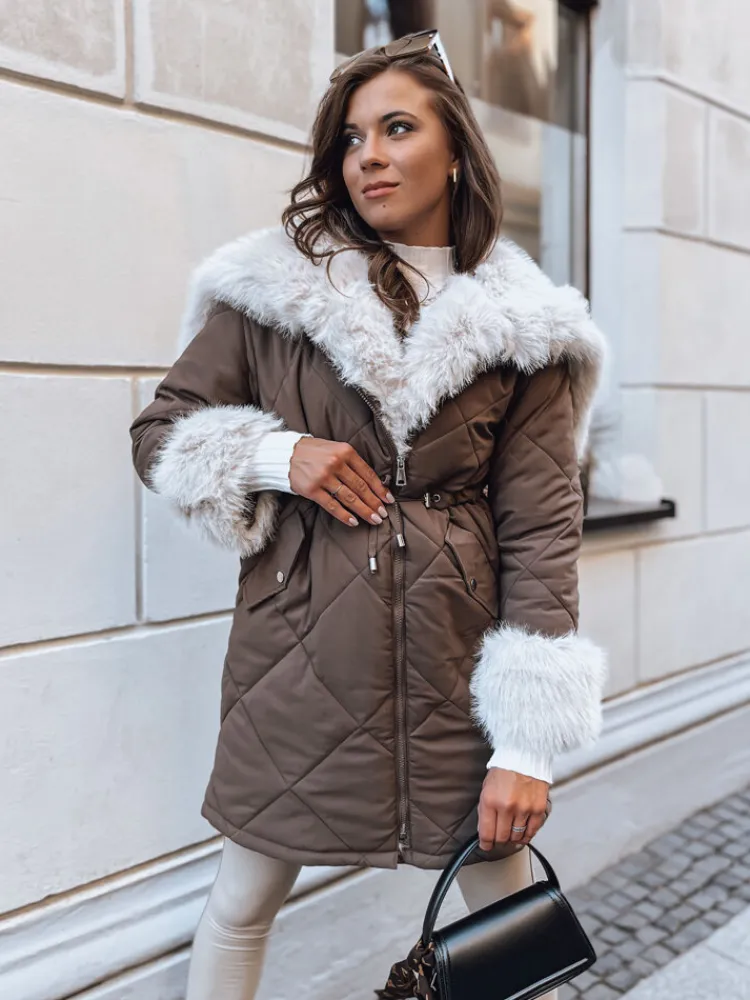 Przepiękna kurtka LUXURY z wysokiej jakości materiału to twój must have na sezon jesienno-zimowy. Ocieplana miękkim i przemiłym w dotyku futerkiem zapewni Ci ciepło i komfort w chłodne dni. Futerko pełni również funkcję dekoracyjną, co sprawia, że będziesz wyglądała kobieco i zmysłowo. Model posiada ściągacz w tali dzięki któremu możesz dopasować kurtkę do swojej sylwetki.