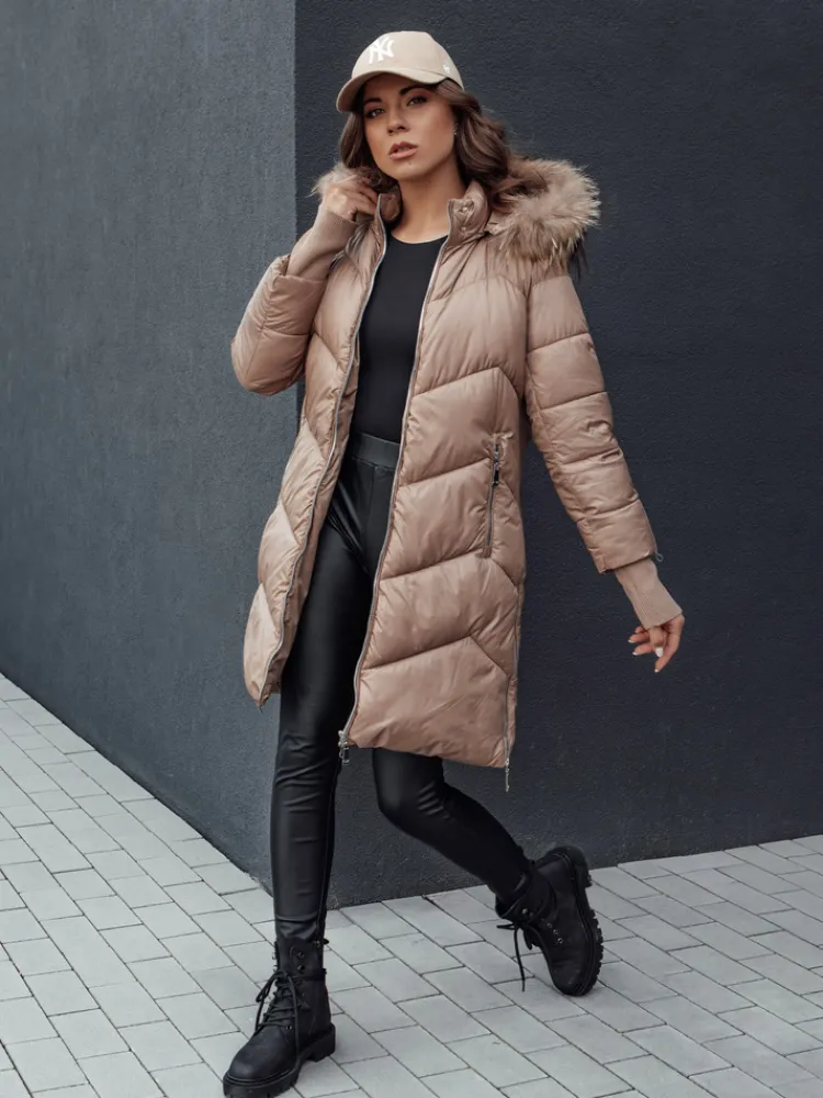 Ta kurtka puchowa to kwintesencja nowoczesnego stylu i wygody. Zaprojektowana, aby chronić przed zimnem, oferuje jednocześnie elegancki wygląd dzięki smukłemu krojowi. Wysokiej jakości materiały gwarantują trwałość i komfort noszenia. Praktyczne kieszenie i funkcjonalne detale czynią ją idealnym wyborem na każdy dzień. Ciesz się ciepłem i modnym wyglądem niezależnie od okazji. Dodaj tę kurtkę do swojej kolekcji i bądź zawsze gotowa na chłodne dni.