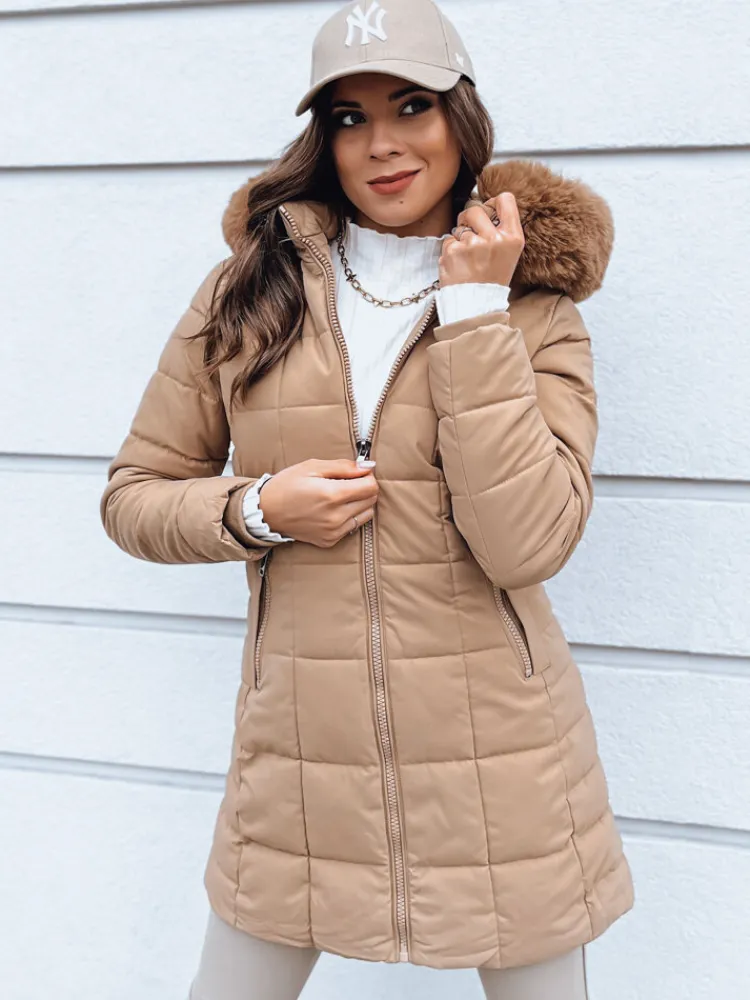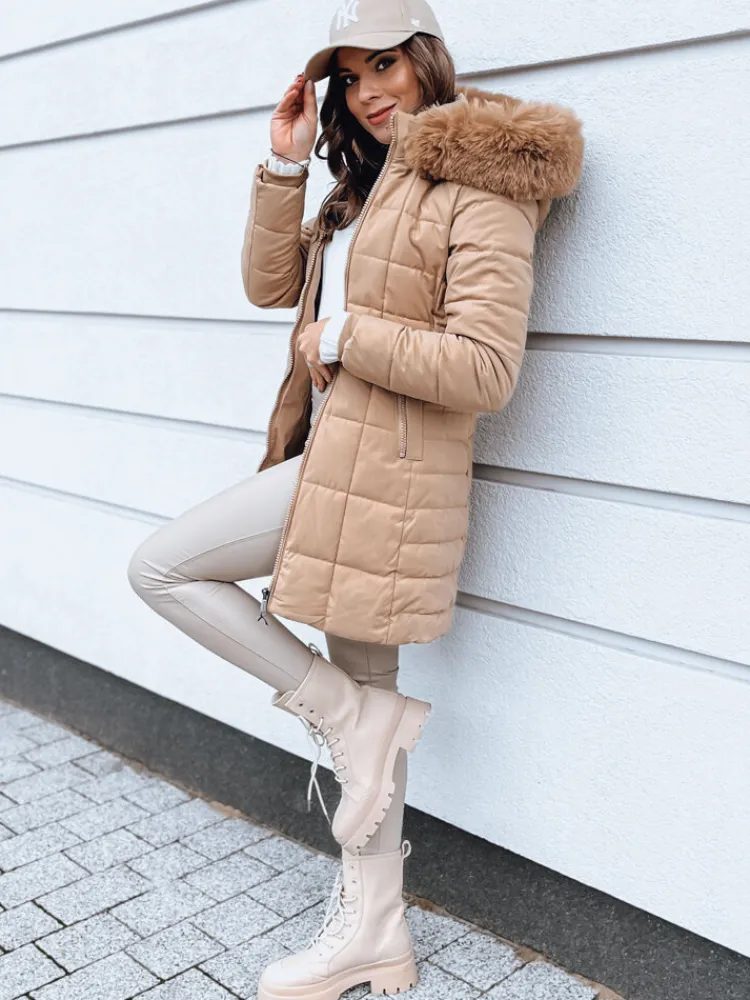 Pikowana kurtka to ponadczasowy model, który sprawdzi się zawsze na sezon jesienno-zimowy. Model ten posiada odpinany kaptur z odpinanym futerkiem oraz dwie praktyczne kieszenie zapinane na suwak.