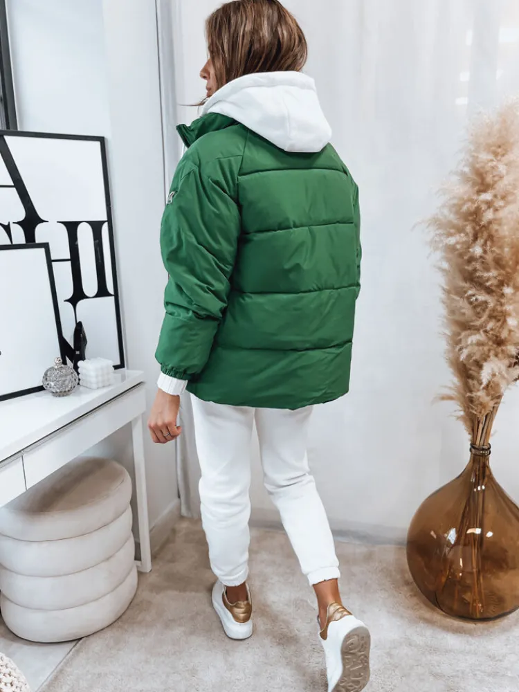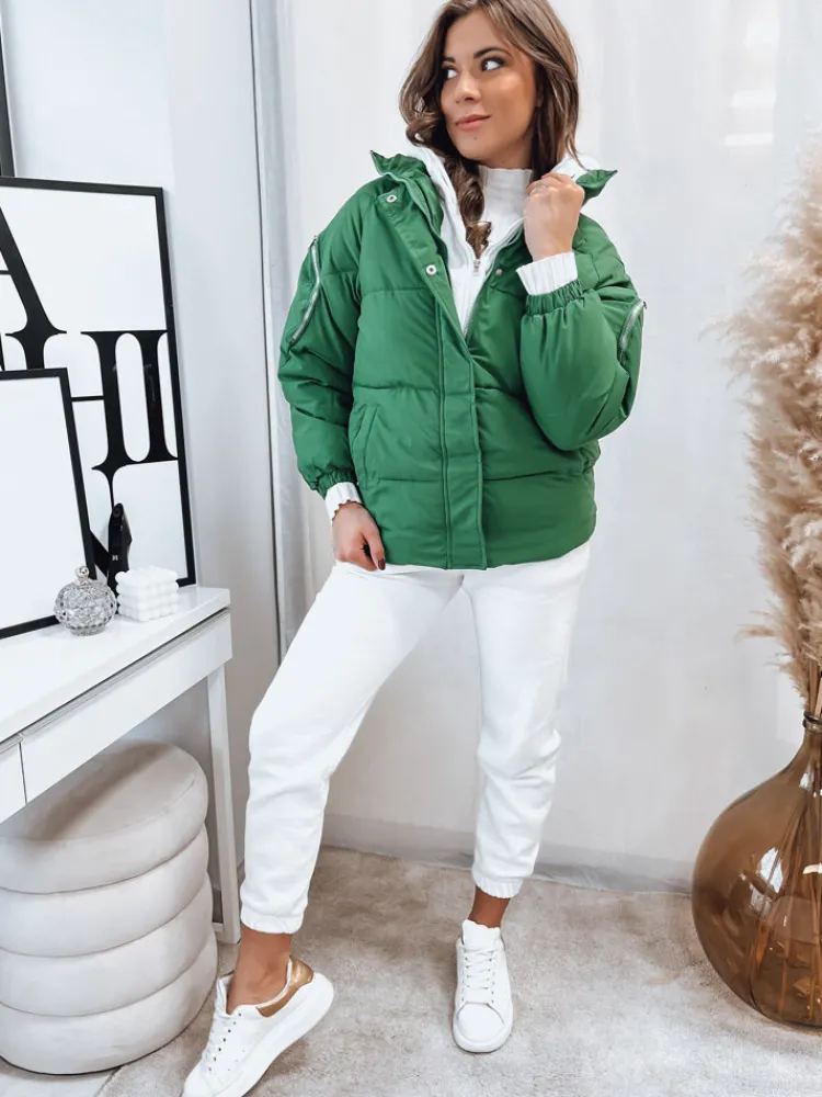 Pikowana kurtka SPACE to hit tego sezonu!. Model posiada nieodpinany kaptur imitujący bluzę. Kurtka zapinana jest na 2 suwaki oraz napy, a ściągacze przy rękawkach zapewniają pełny komfort i ochronę przez zimnem. Model posiada 2 niezapinane kieszenie oraz ozdobne suwaki na ramionach.