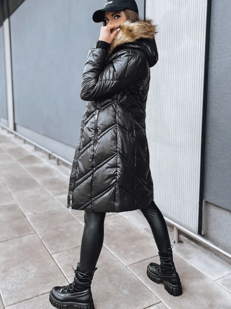 Pikowana kurtka VEIL o dłuższym kroju to must have na sezon jesienno-zimowy. Model posiada nieodpinany kaptur z futerkiem oraz dwie pojemne kieszenie zapinane na suwak. Jest to doskonała propozycja dla kobiet ceniących styl i śledzących najnowsze trendy.
