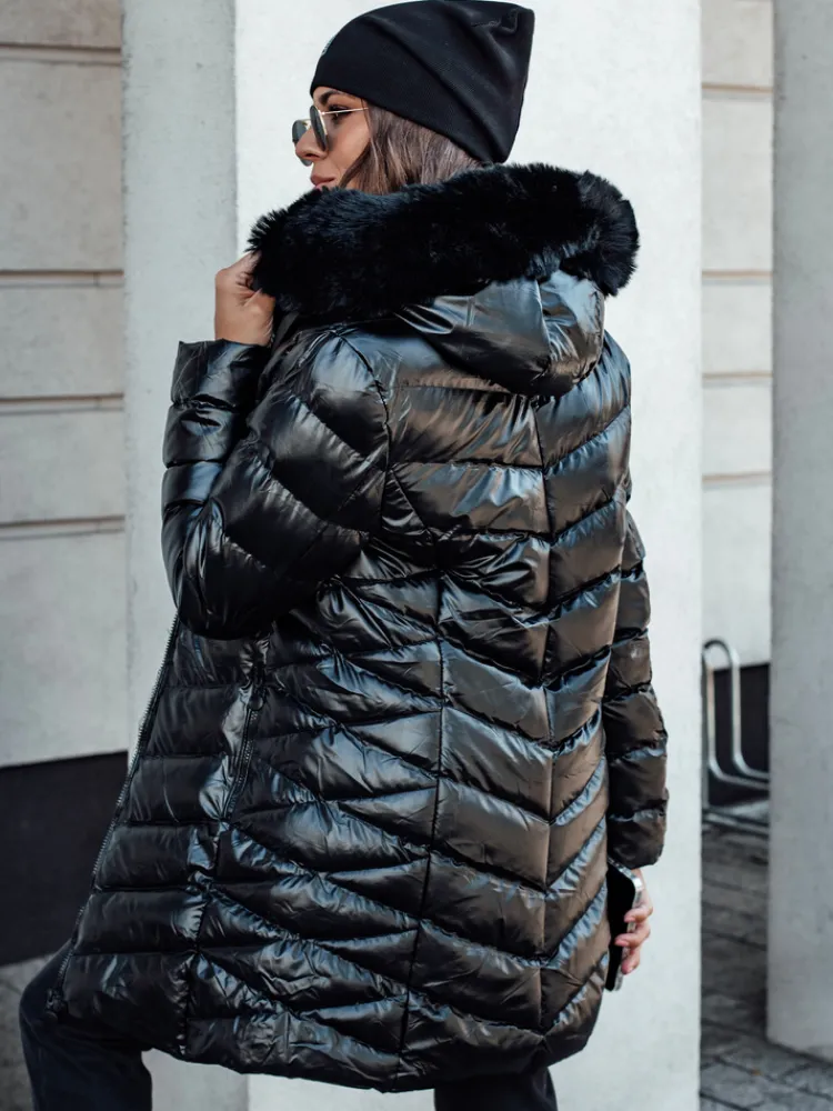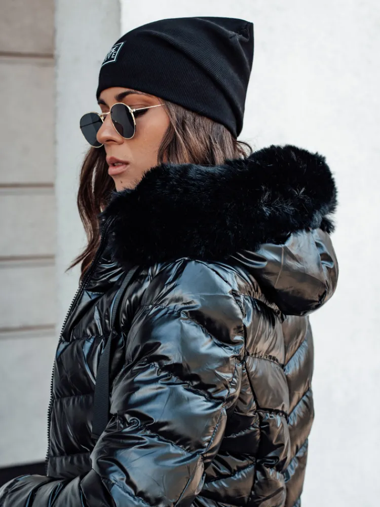 Wyjątkowa pikowana kurtka wykonana z połyskującego materiału. Model posiada nieodpinany kaptur z odpinany futerkiem, dzięki czemu możemy stworzyć zarówno eleganckie, jak i sportowe looki. Z przodu znajdują się dwie pojemne kieszenie.