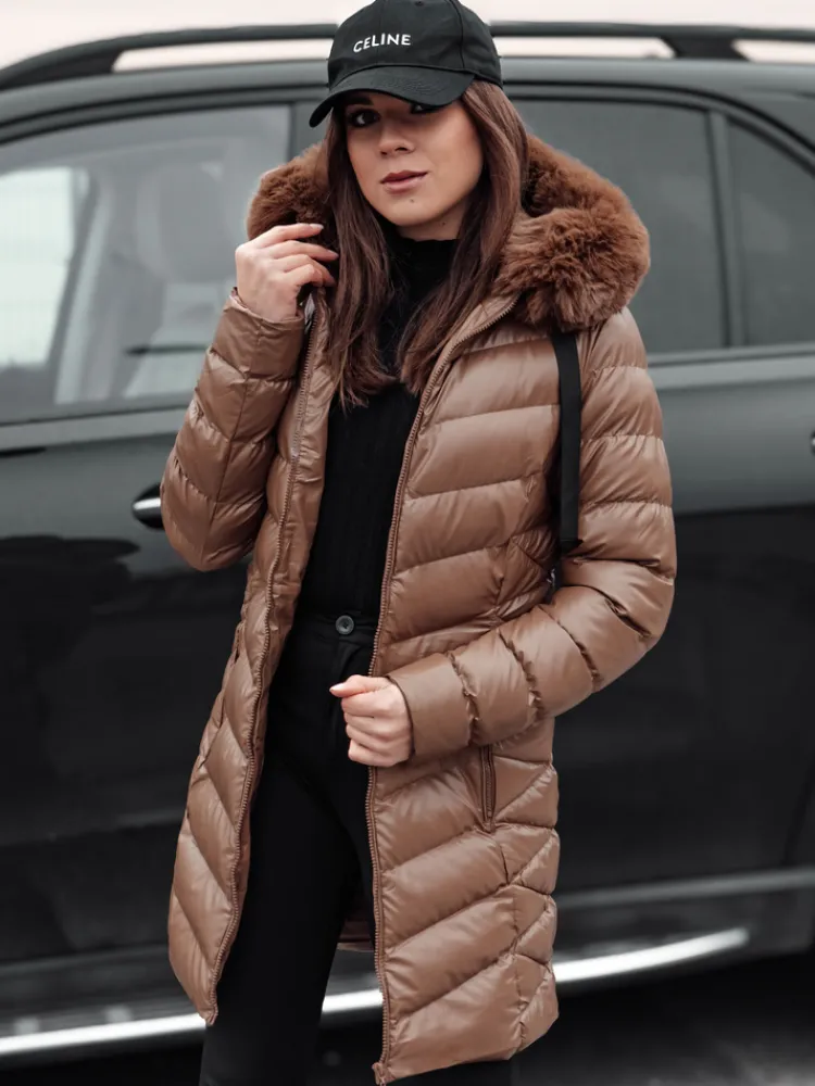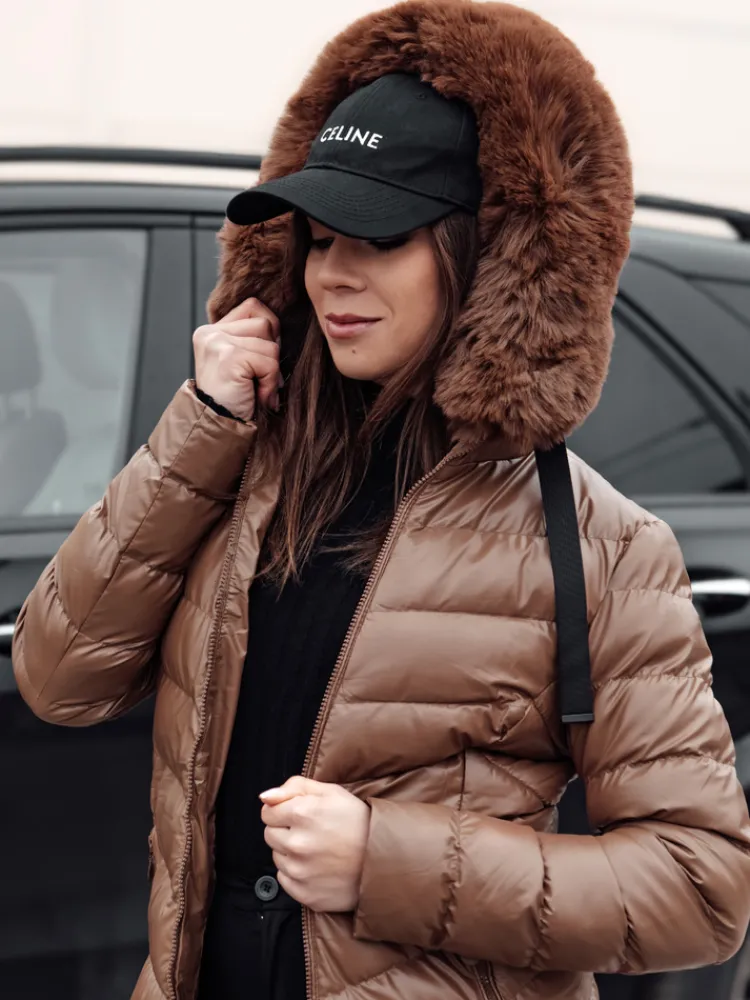 Wyjątkowa pikowana kurtka wykonana z połyskującego materiału. Model posiada nieodpinany kaptur z odpinany futerkiem, dzięki czemu możemy stworzyć zarówno eleganckie, jak i sportowe looki. Z przodu znajdują się dwie pojemne kieszenie.
