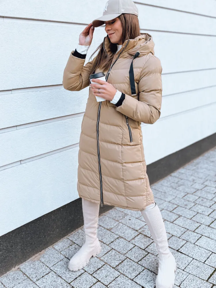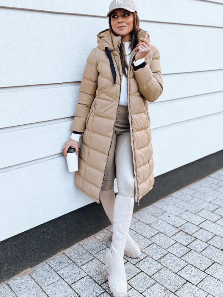 Pikowana kurtka o dłuższym fasonie to propozycja idealna dla kobiet stawiających na styl i wygodę. Posiada nieodpinany kaptur, dwie kieszenie zapinane na suwak oraz krój, który optycznie wysmukla sylwetkę. Niezwykle piękna, ciepła oraz zapewniająca maksimum komfortu noszenia.