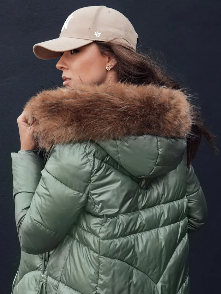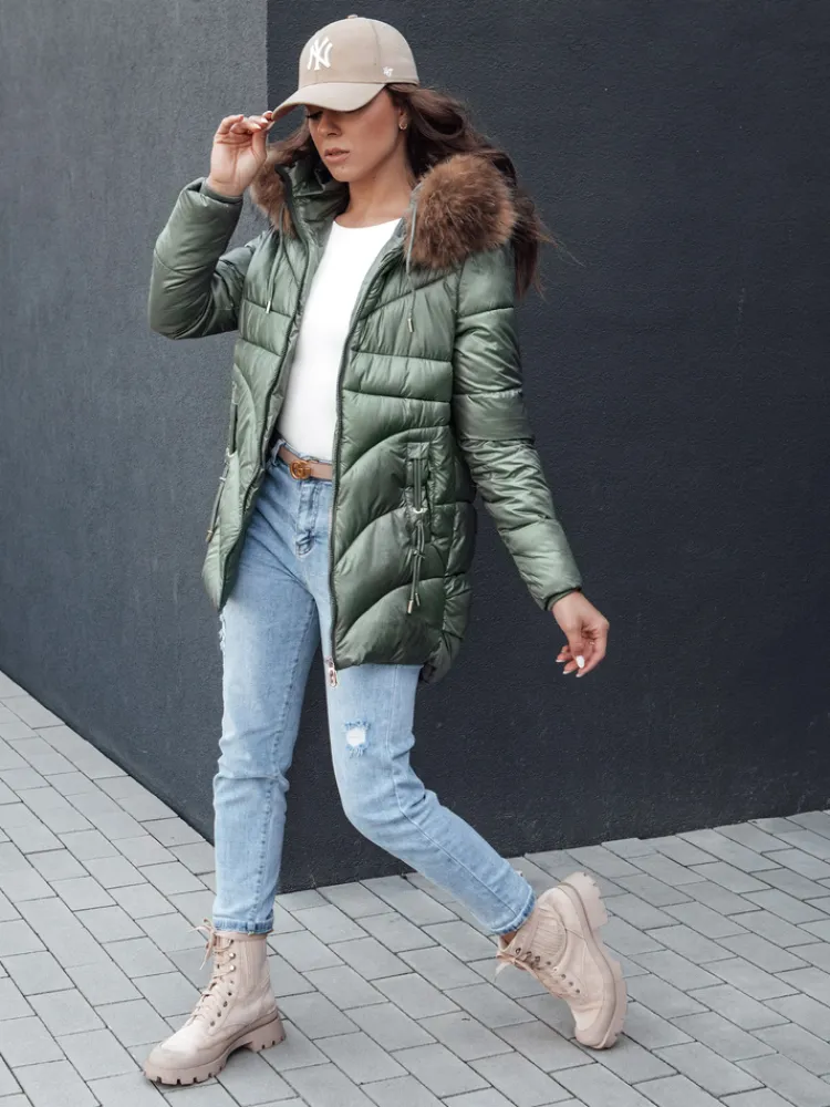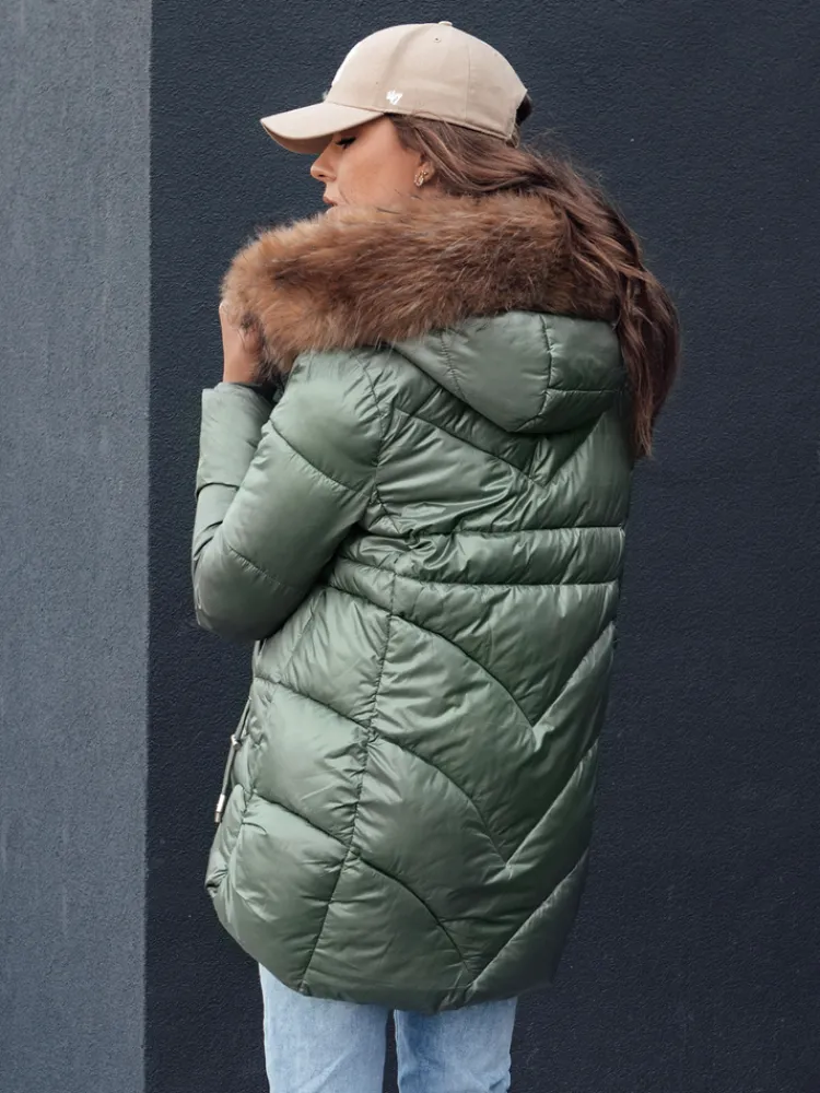 Nasza kurtka to połączenie mody i praktyczności. Dzięki zapinaniu na zamek, jej zakładanie i zdejmowanie jest szybkie i łatwe. Kaptur z futerkiem dodaje elegancji, a jednocześnie pozwala na dostosowanie kurtki do pogody. Dwie kieszenie zewnętrzne są idealne na przechowanie najpotrzebniejszych rzeczy, a ściągacze na dole i rękawach skutecznie chronią przed wiatrem, zapewniając ciepło. To idealna kurtka na codzienne wyjścia, które wymagają stylowego wyglądu i niezawodnej ochrony przed chłodem.