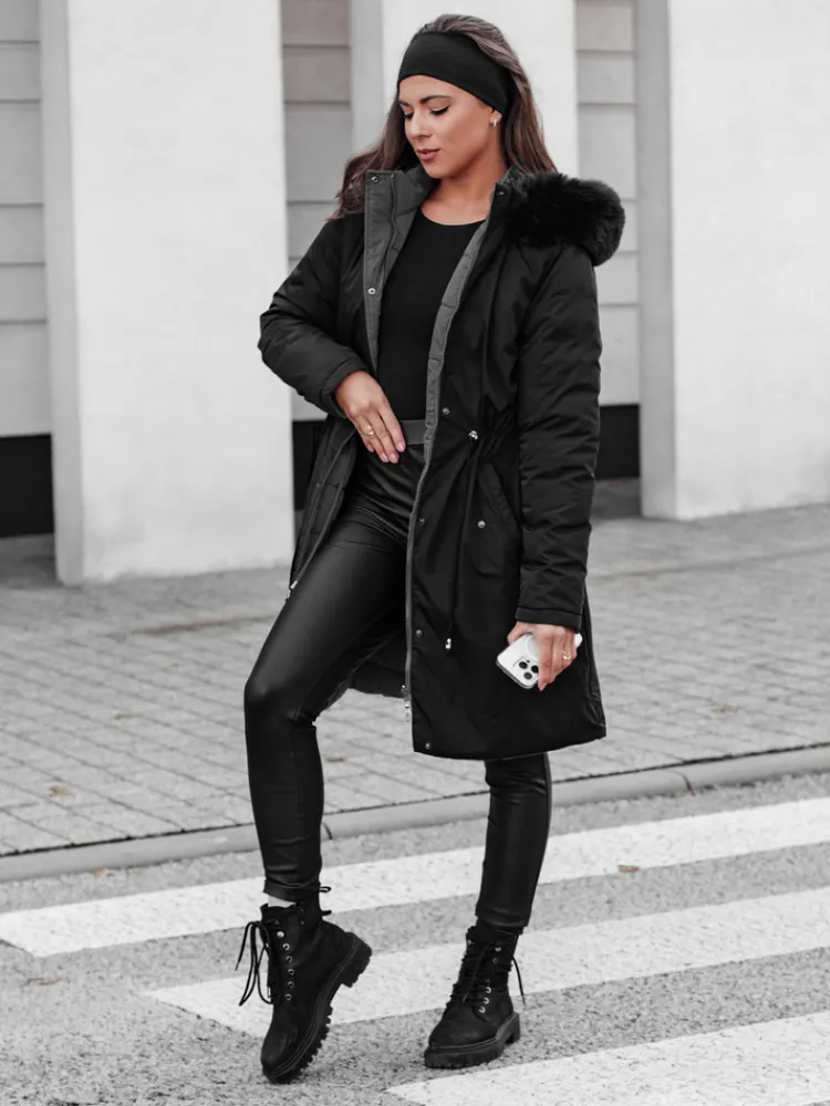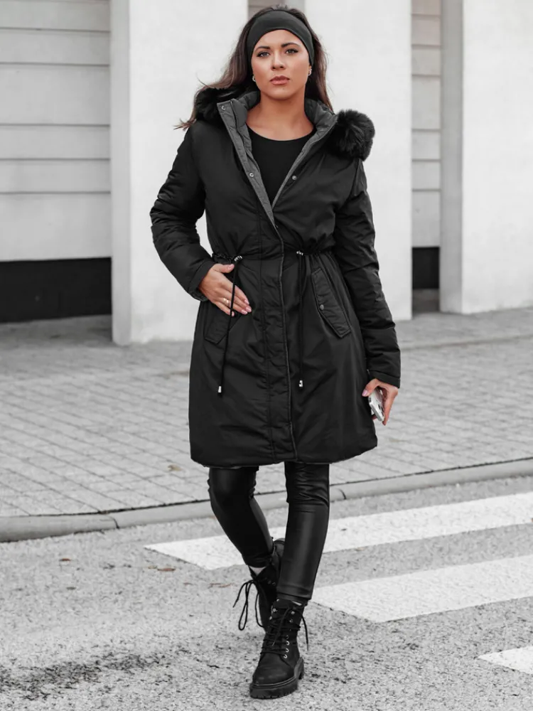 Kurtka damska parka długa dwustronna z futerkiem TRENDNEL