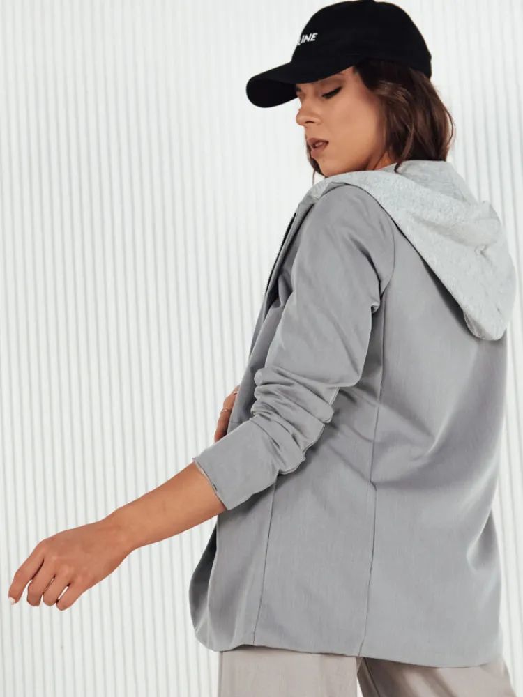 Odkryj doskonały balans między elegancją a codziennym stylem z naszą marynarką z podszyciem bluzy. Przemyślne połączenie formalnego kołnierza i nieformalnego kaptura tworzy wyjątkowy look, który przeniesie Cię od biurka do weekendowych przygód bez konieczności zmiany ubrania. Marynarka zapinana na guzik oraz zamek, to esencja współczesnej mody dla kobiety ceniącej funkcjonalność i oryginalność.