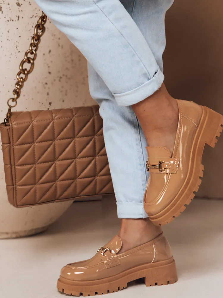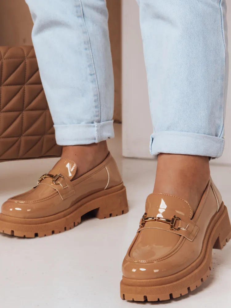 Mokasyny damskie lakierowane na grubej podeszwie ELEGANCI
