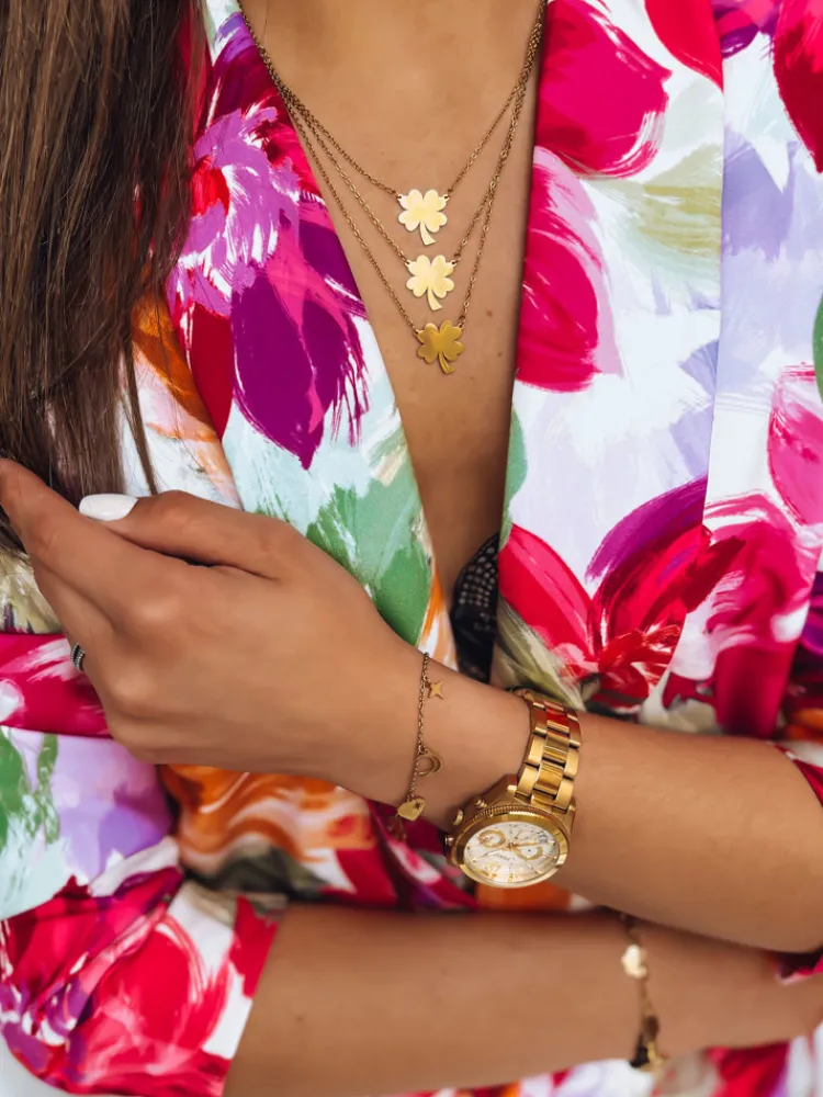 Łańcuszek z trzech części to niezwykła kompozycja, która zgrabnie połączyła trzy motywy, tworząc unikalne dzieło sztuki, które zachwyca zarówno swoją estetyką, jak i znaczeniem. Ta ozdoba będzie idealna zarówno do sportowych jak i eleganckich stylizacji.