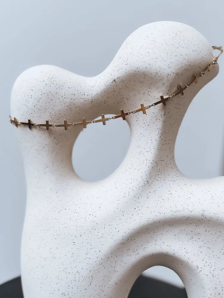 Łańcuszek z motywem krzyża. Posiada zapinanie z możliwością regulacji długości. Idealnie będzie pasował do każdej stylizacji.