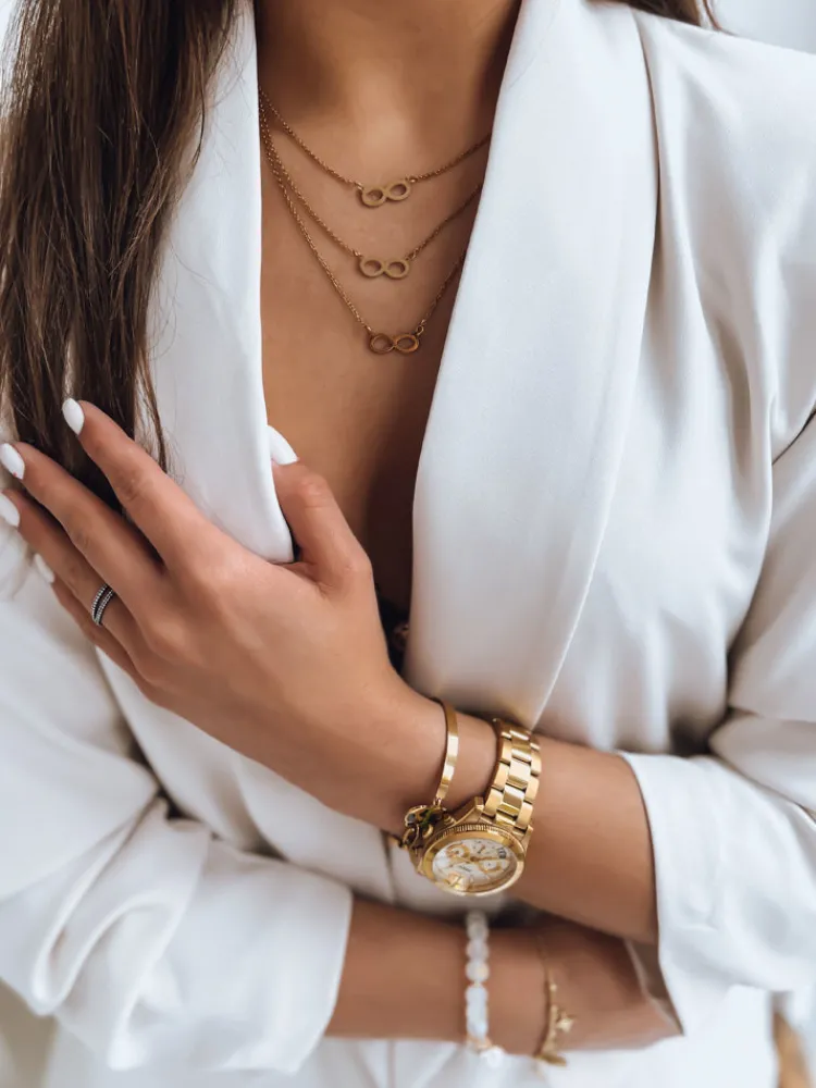 Łańcuszek z trzech części to niezwykła kompozycja, która zgrabnie połączyła trzy motywy, tworząc unikalne dzieło sztuki, które zachwyca zarówno swoją estetyką, jak i znaczeniem. Ta ozdoba będzie idealna zarówno do sportowych jak i eleganckich stylizacji.