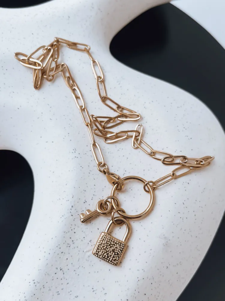 Naszyjnik PADLOCKŁańcuszek z motywem kłódki i klucza to niezwykła kompozycja. Model będzie idealny zarówno do spo…