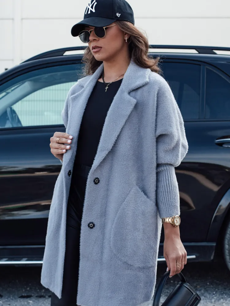 Płaszcz damski z alpaki RITA II to idealny wybór na chłodne dni. Wykonany z miękkiego i lekkiego materiału, zapewnia komfort oraz ciepło, jednocześnie nie obciążając sylwetki. Klasyczny krój z dużymi kieszeniami i wygodnym zapięciem sprawia, że płaszcz ten świetnie komponuje się z każdą stylizacją. Uniwersalny charakter sprawia, że pasuje zarówno do codziennych, jak i bardziej eleganckich zestawów.