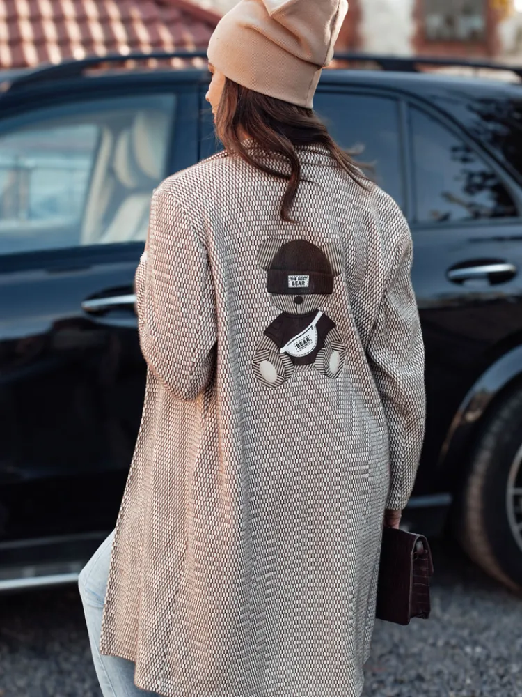 Stylowy płaszcz, który zachwyca nie tylko nowoczesnym krojem, ale także uroczym wzorem misia na plecach. To idealne połączenie miejskiego szyku z odrobiną zabawy, co sprawia, że wyróżnia się na tle innych. Wygodny fason zapewnia swobodę ruchu, a wysokiej jakości materiał daje uczucie komfortu nawet w chłodne dni. Idealny do codziennych stylizacji.