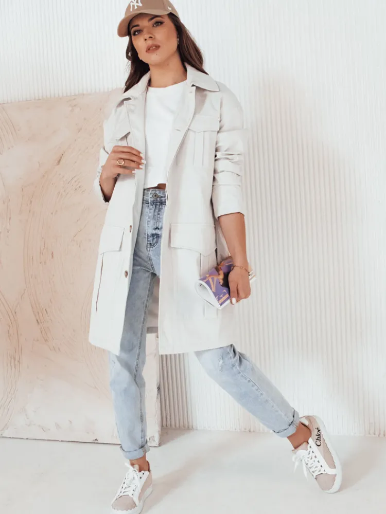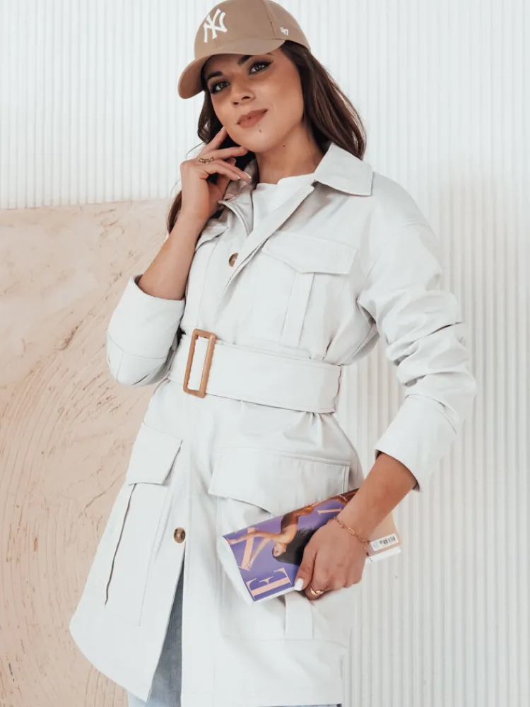 Bardzo stylowy płaszcz o prostym kroju. Zapinany na guziki. Model posiada pasek, który pięknie podkreśla talię. Świetnie się układa i prezentuje. Pasuje do codziennych i eleganckich stylizacji.