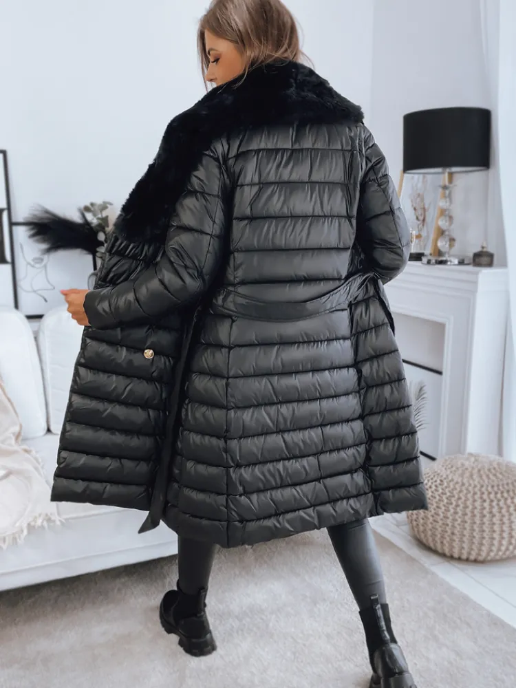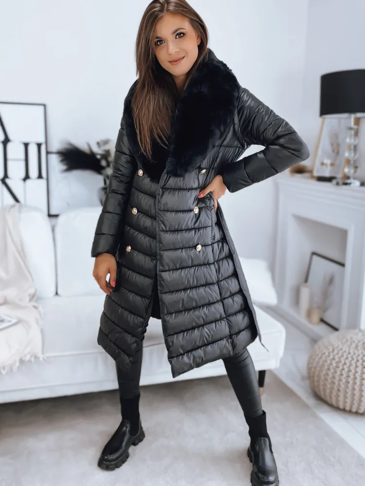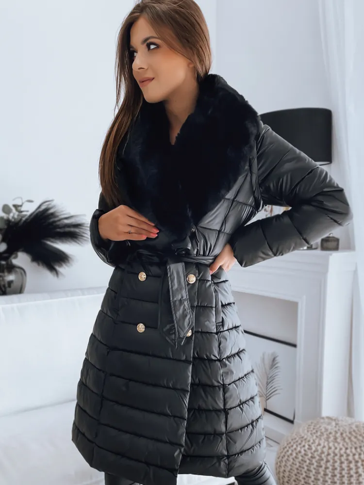 Wyjątkowy model, który spełnia jednakowo funkcje płaszcza oraz kamizelki dzięki odpinanym rękawom. Futerko również jest odpinane, dzięki czemu możemy stworzyć sportowe, jak i eleganckie stylizacje. Zapinana na ozdobne guziki. W talii posiada wiązanie, dzięki czemu świetnie podkreśla kobiecą sylwetkę. Do modelu dołączony jest pasek w tym samym kolorze.