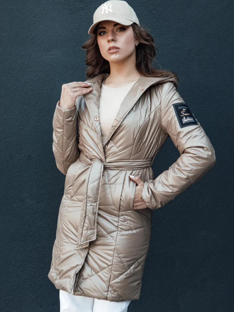 Kurtka damska pikowana długa z kapturem PAUL