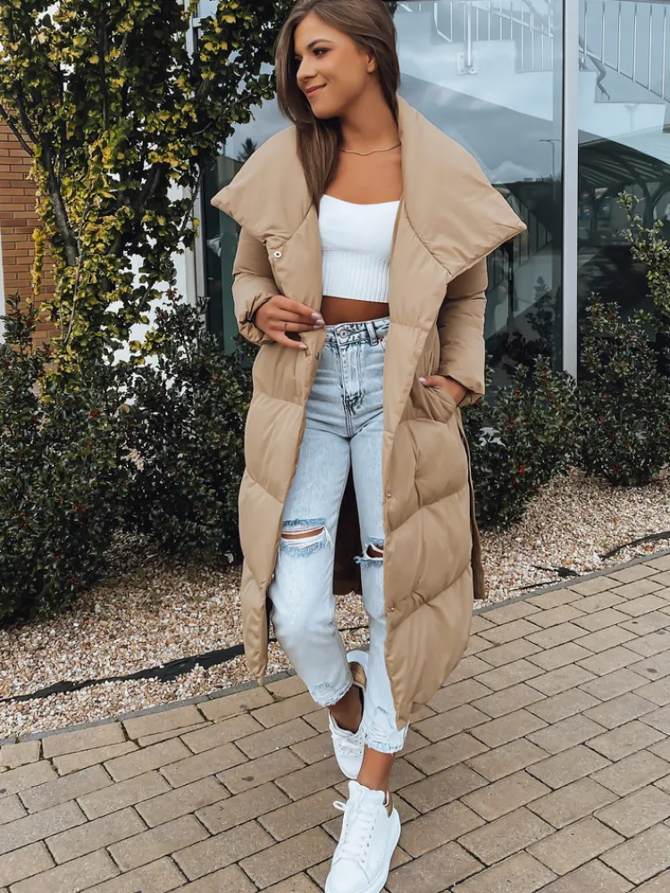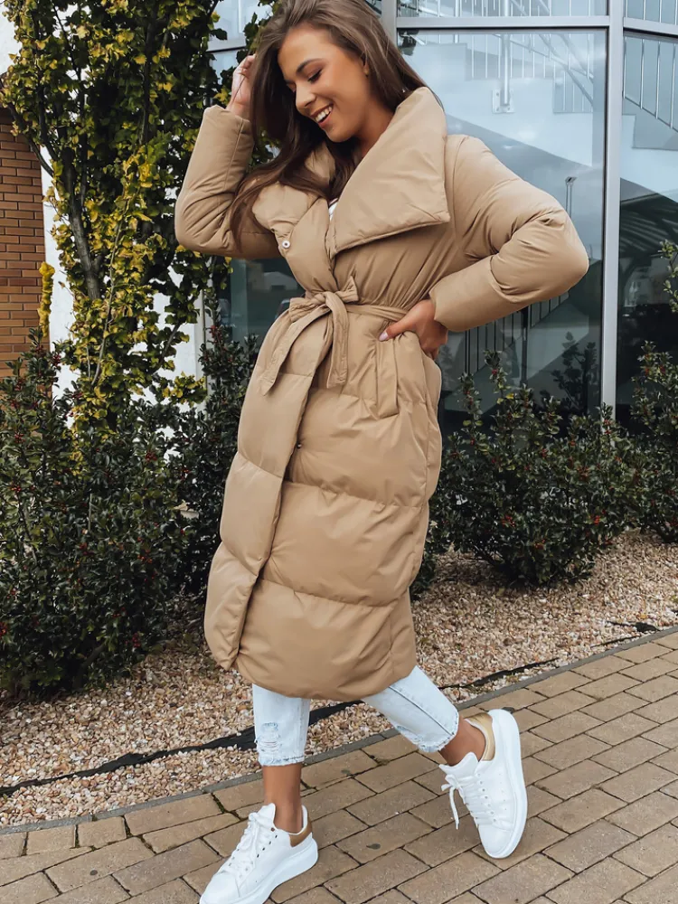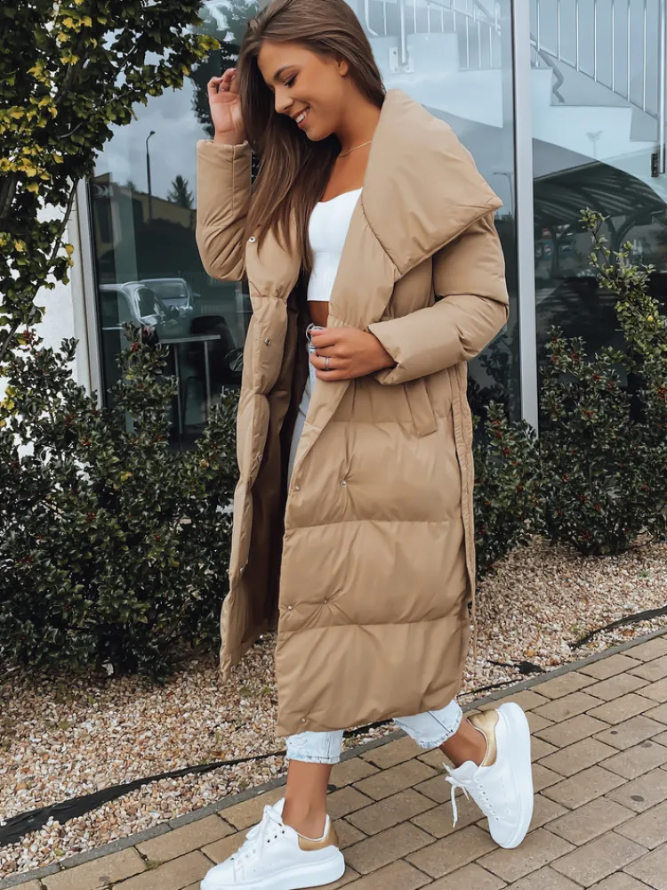 Favi to kurtka/płaszcz o dłuższym kroju. Posiada niezwykle efektownie wyglądający, duży kołnierz, dwie kieszenie oraz wiązanie w pasie, które umożliwia podkreślenie talii. Zapinana na napy. Jest to propozycja dla kobiet ceniących wygodę i styl. Dostępna w 3 wersjach kolorystycznych.