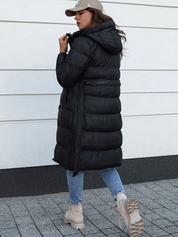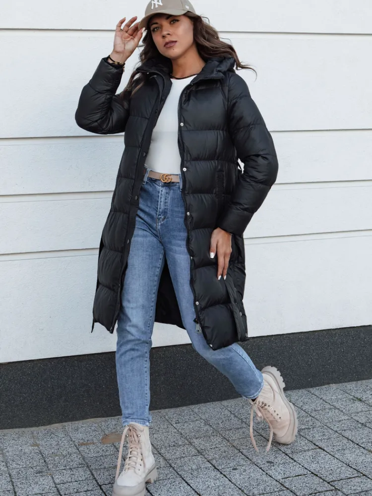 Zimowy płaszcz puchowy, który łączy w sobie styl i funkcjonalność. Dzięki swojej długości i wypełnieniu, gwarantuje ciepło nawet w najchłodniejsze dni. Zapięcie na suwak i dodatkowy pasek pozwalają idealnie dopasować płaszcz do sylwetki, podkreślając jej kształty. To must-have w Twojej zimowej garderobie, który sprawi, że zawsze będziesz wyglądać modnie i czuć się komfortowo, niezależnie od pogody.