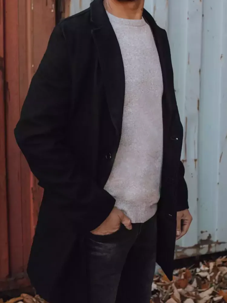 - Czarny płaszcz męski.