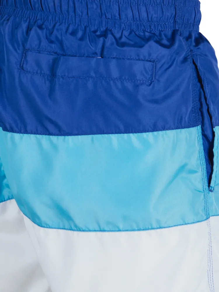 Męskie kąpielówki z elastycznym pasem i regulacją sznurkiem to wygodna propozycja na lato. Charakterystyczne pasy w trzech kolorach dodają im wyrazistości i stylowego, plażowego charakteru. Wygodne kieszenie boczne oraz tylna zapinana na rzep zapewniają funkcjonalność. Idealne do aktywnego wypoczynku na plaży i przy basenie.