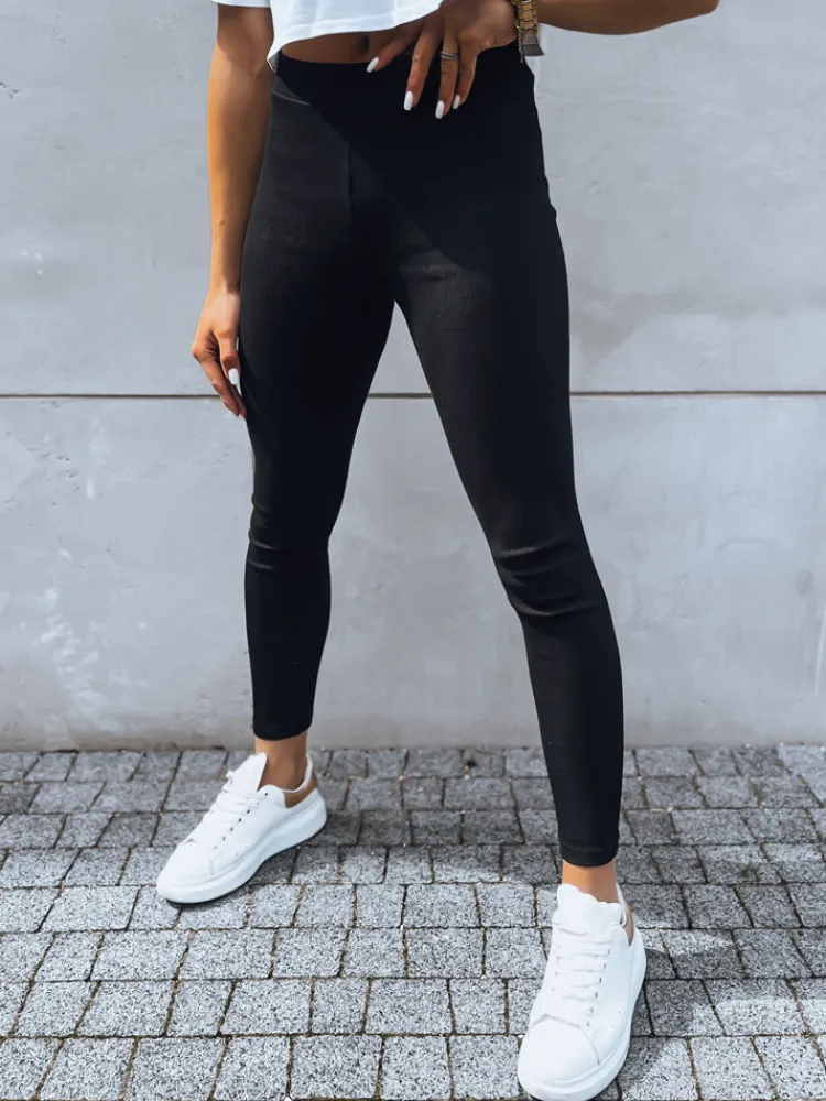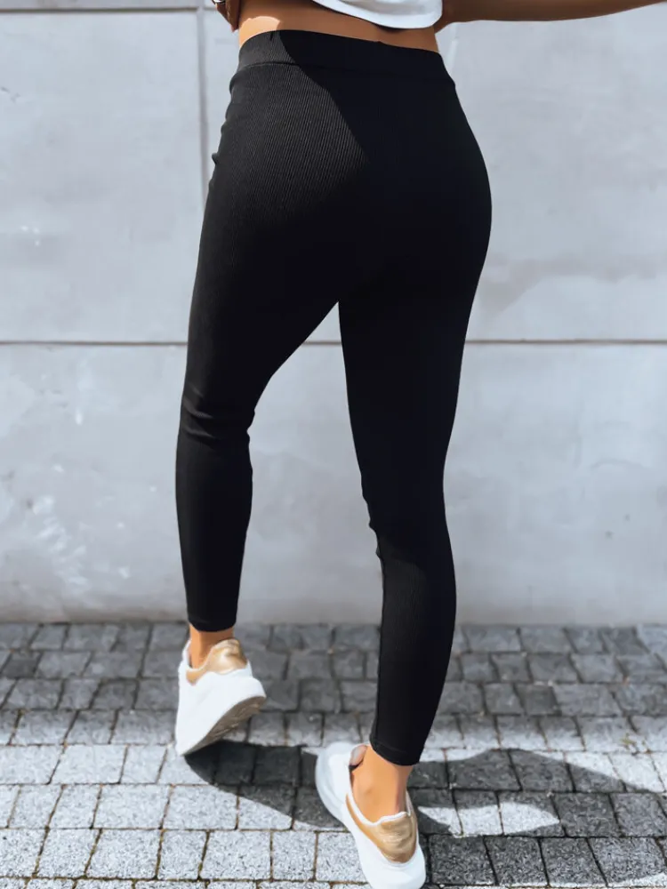 Prążkowane legginsy z szerokim pasem i gumką idealnie dopasowują się do sylwetki. Możesz je zestawić zarówno z oversizową bluzą, jak i obcisłym topem.